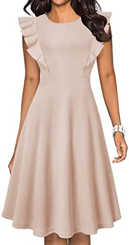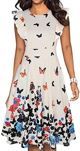 FLATTERING RUFFLE SLEEVES : The sexy flutter sleeves add some pizzazz and not tight around your arms. Plus there is extra fabric that covers the space between your arm and the ruffle, this makes the dress very classy.¡¾WARM TIPS¡¿This size of vintage dress is smaller, to ensure your experience, pls order one size up.Thank you!