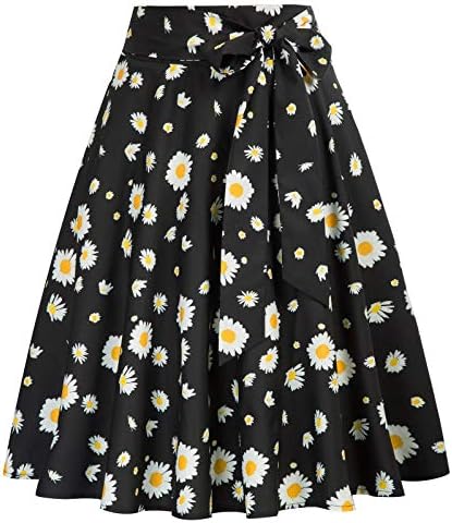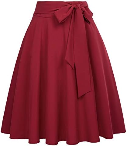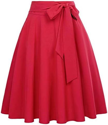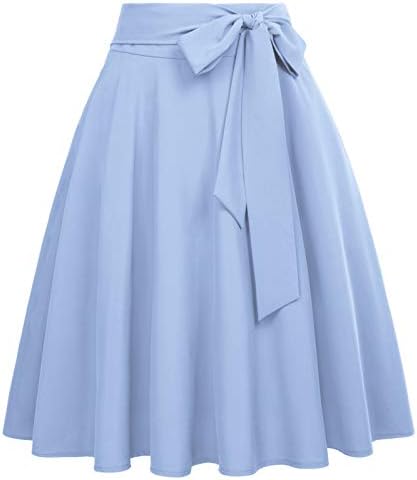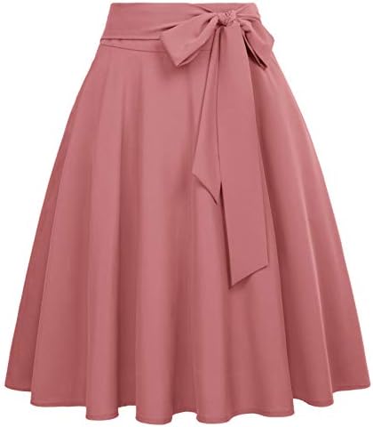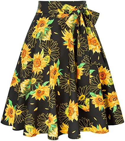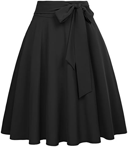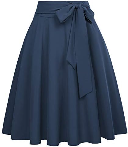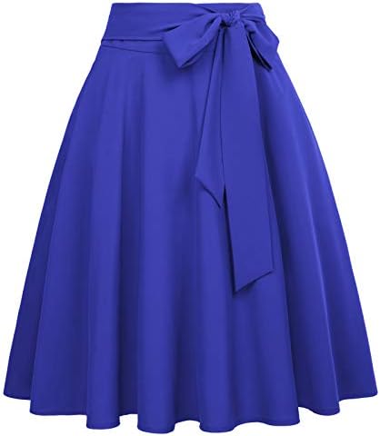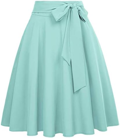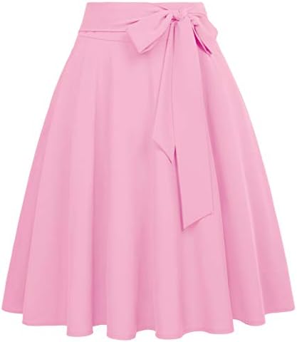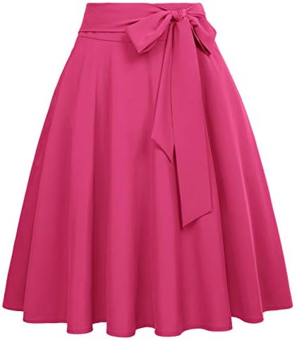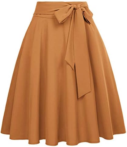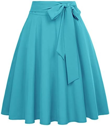 Belle Poque Women's High Waist A-Line Pockets Skirt Skater Flared Midi Skirt