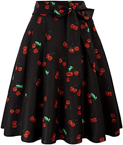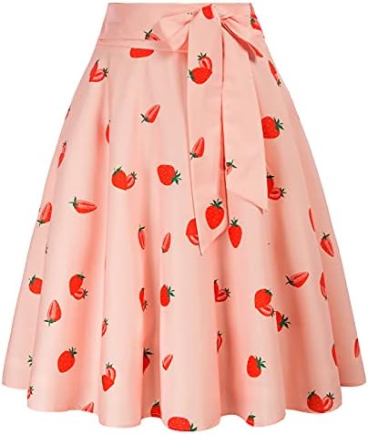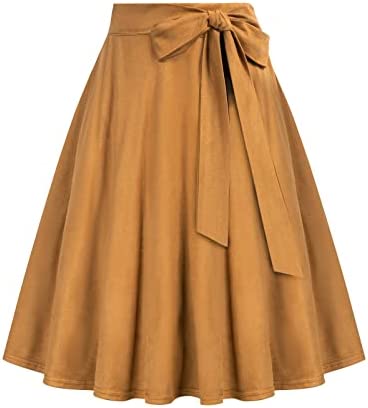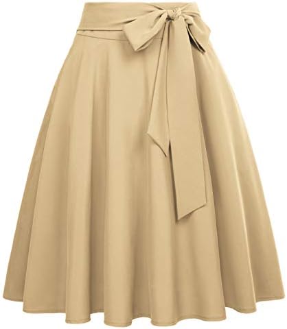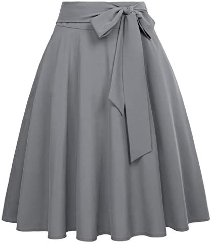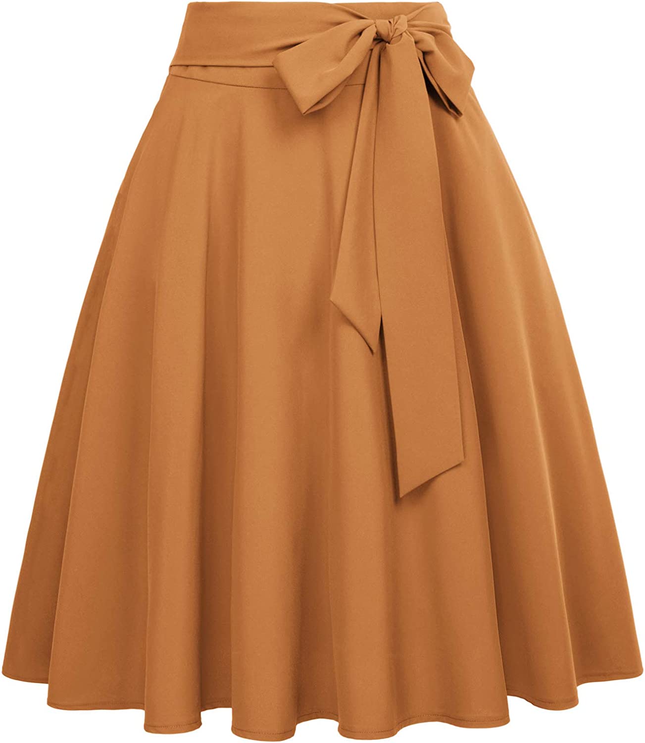 Skirt Feature: High waist skirts; Open side-seam pockets; Fixed belt adorns waist; Flared A-Line silhouette; Concealed zipper in the back