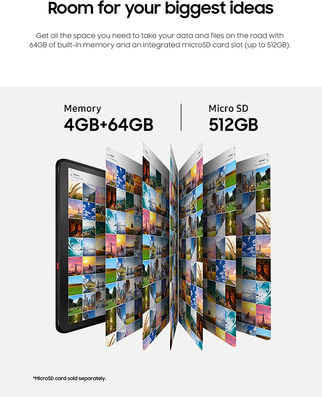 Built to withstand rough weather conditions with military-grade defense, the Samsung Galaxy Tab Active Pro tablet is designed to help you achieve the best industrial performance. The Galaxy Tab Active Pro is MIL-STD-810G and IP68-certified - tough enough.