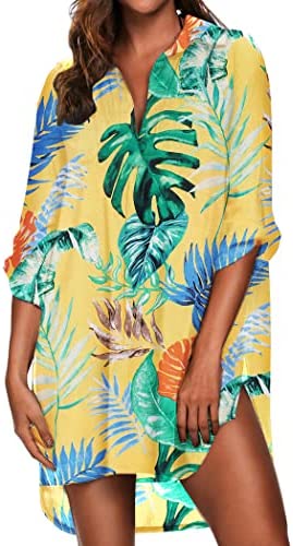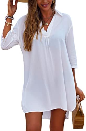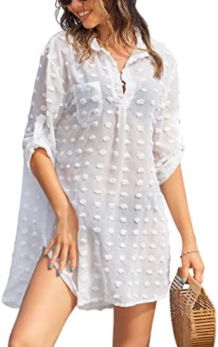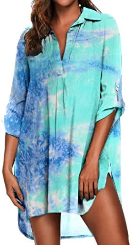 Ekouaer Women's Swimsuit Beach Cover Up Shirt Bikini Beachwear Bathing Suit Beach Dress