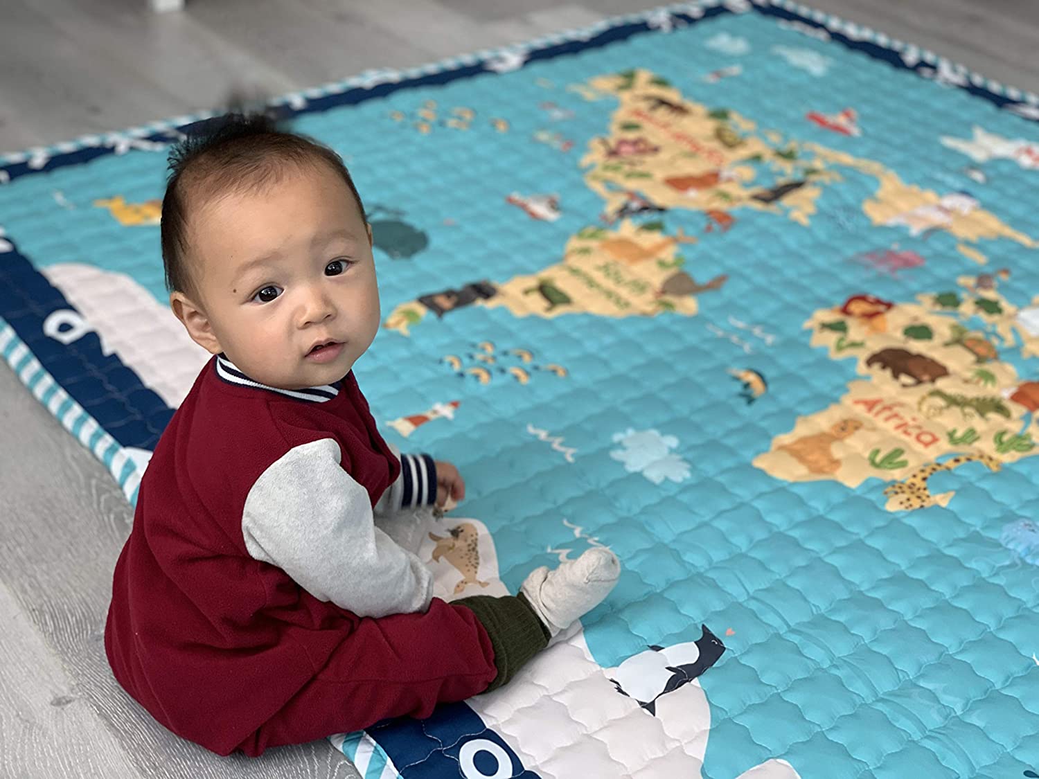 1" PADDED THICKNESS for babies and children to play, ideal for encouraging crawling, rolling, sitting up, and learning to walk. It ensures a soft landing for rolling, tumbling, and falls.
