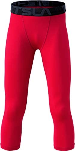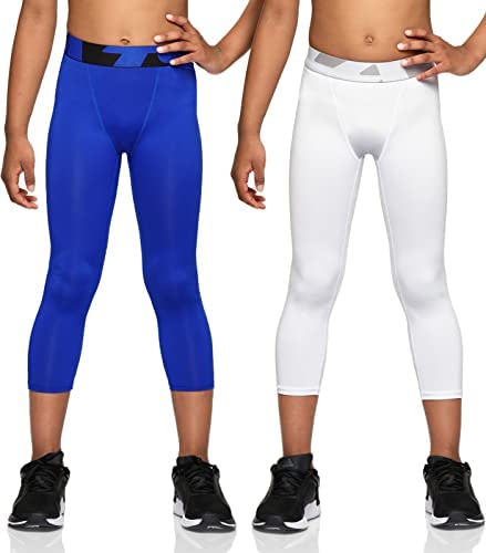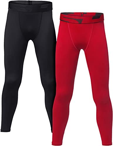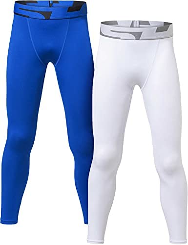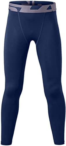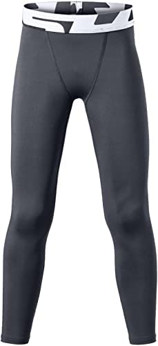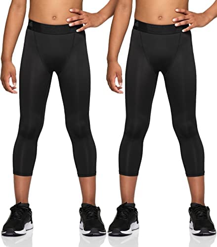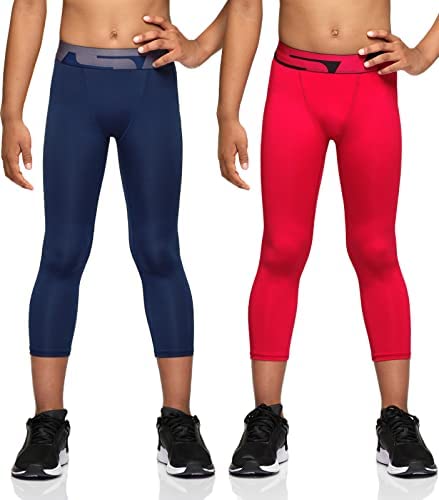 TSLA 1 or 2 Pack Boys Youth UPF 50+ Compression Pants Baselayer, Cool Dry Running Tights, 4-Way Stretch Workout Leggings