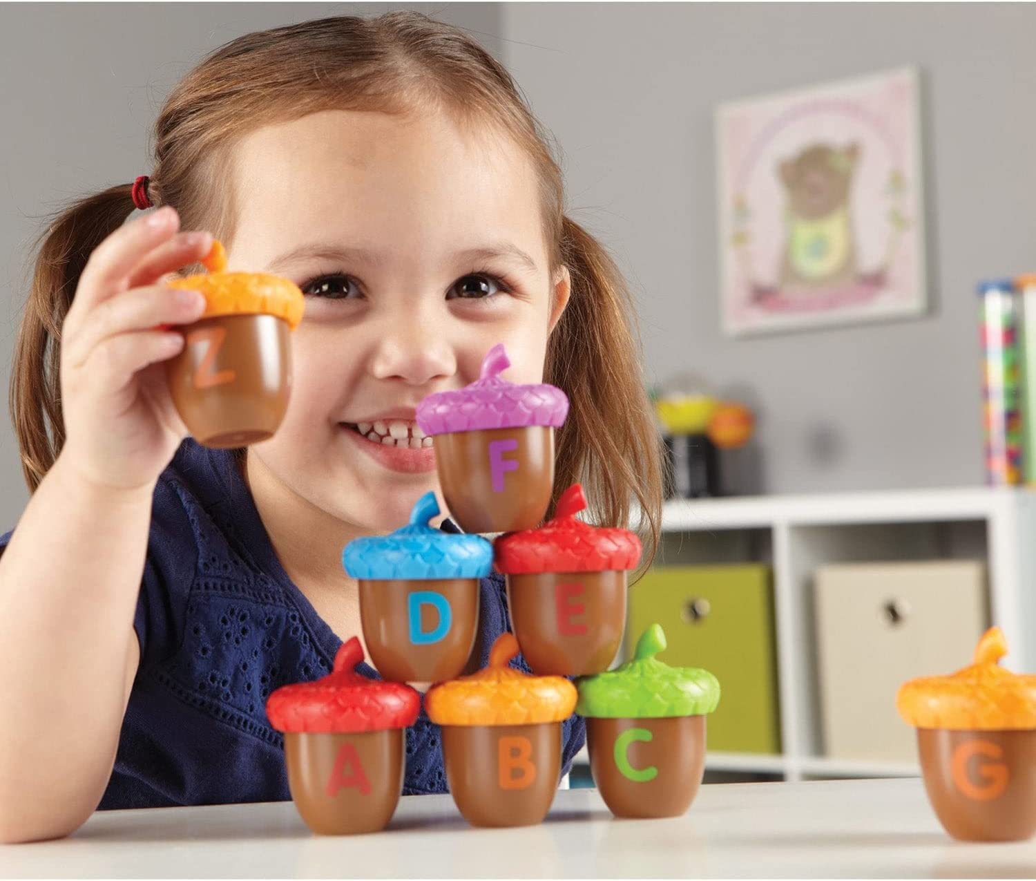 • EARLY VOCABULARY SKILLS: Each fun acorn figure helps grow kids' knowledge of animals, plants, and other common vocabulary words, from the apple in A to the zebra in Z.