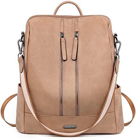 [HIGH-END MATERIAL]: Warm Tip: The long shoulder strap is made of canvas and put on the interior zipper pocket of the backpack, please check it when you receive. Made of PU leather with metal hardware, heavy duty zips and fabric lining, which is fashionable and durable.