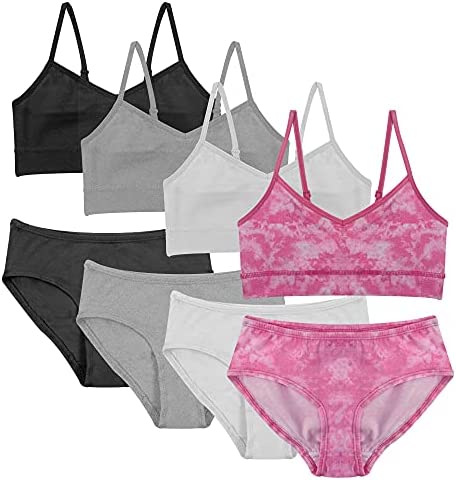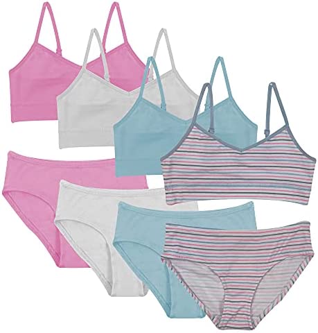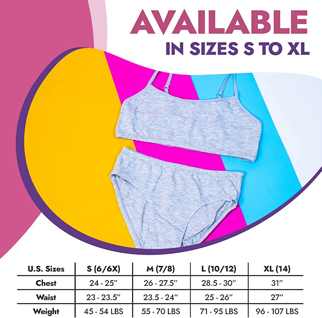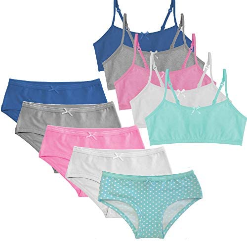 • LEADING GIRLS UNDERWEAR VALUE PACK THAT'S PERFECT FOR EVERYDAY: Our Little Girl Underwear Gives You The Best Value For The Money! You'll Get Multiple Matching Sets Of Girls Training Bras & Girls Panties In A Variety Of Colors & Patterns.