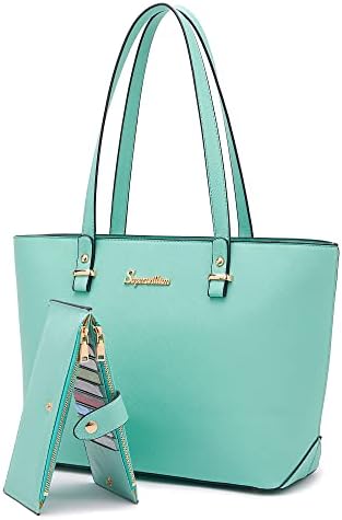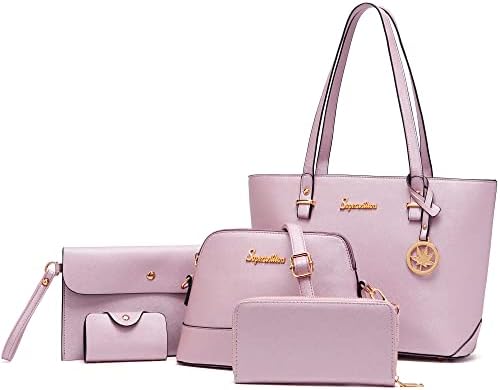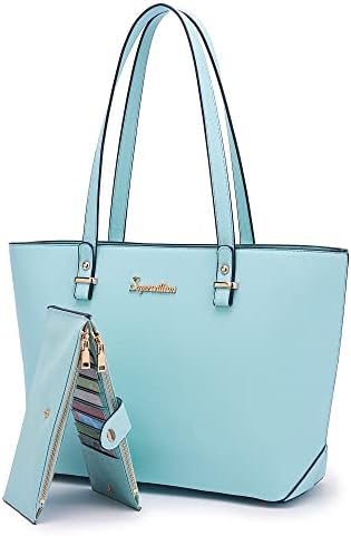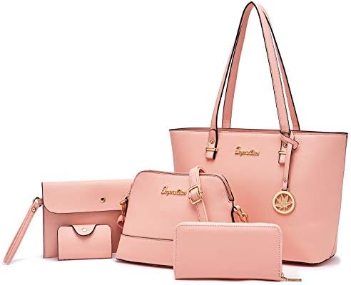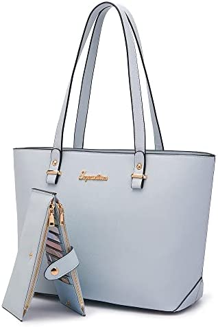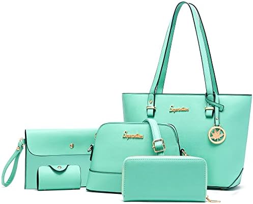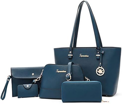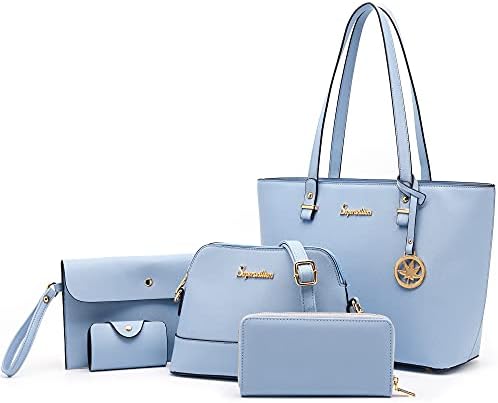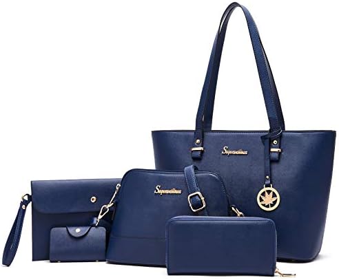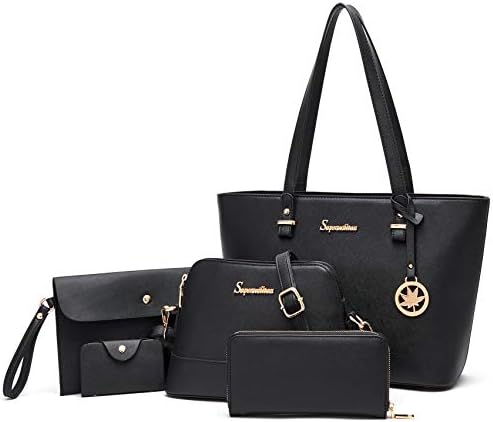【Pockets】 Tote bag: One main compartment with one interior zipper pocket and two slot pockets. 5pcs purse set include large tote handbag, messenger bag, wallet, clutch and card holder. The purse set can hold your iPad, wallet, makeups, phone, little water bottle, perfumes, gloves and other daily use and keep them organized.