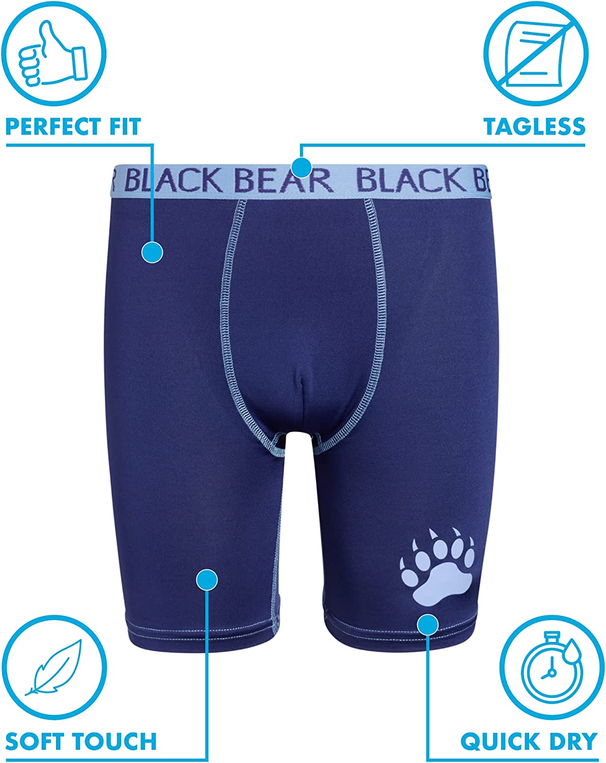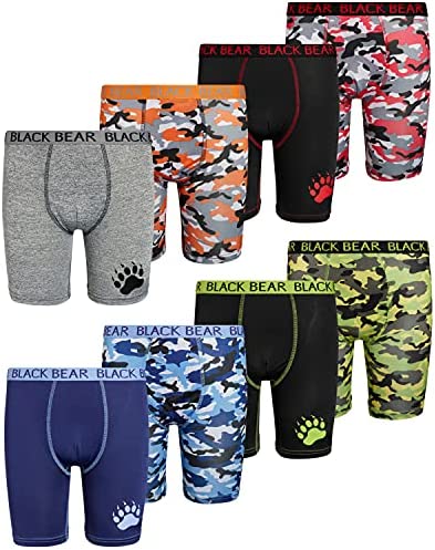 Black Bear Boys Performance Dry-Fit Compression Long Boxer Brief (8 Pack)
