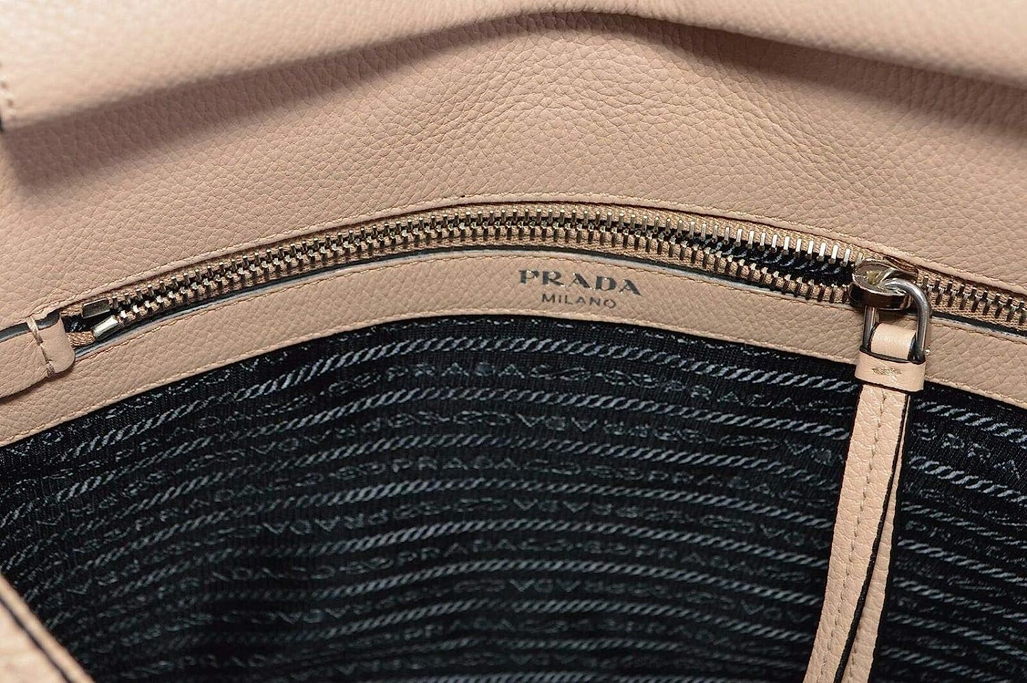 • Embossed Prada Logo Gold-tone hardware Two-way zipper fastening Black fabric interior lining One interior zipper pocket One interior patch pocket