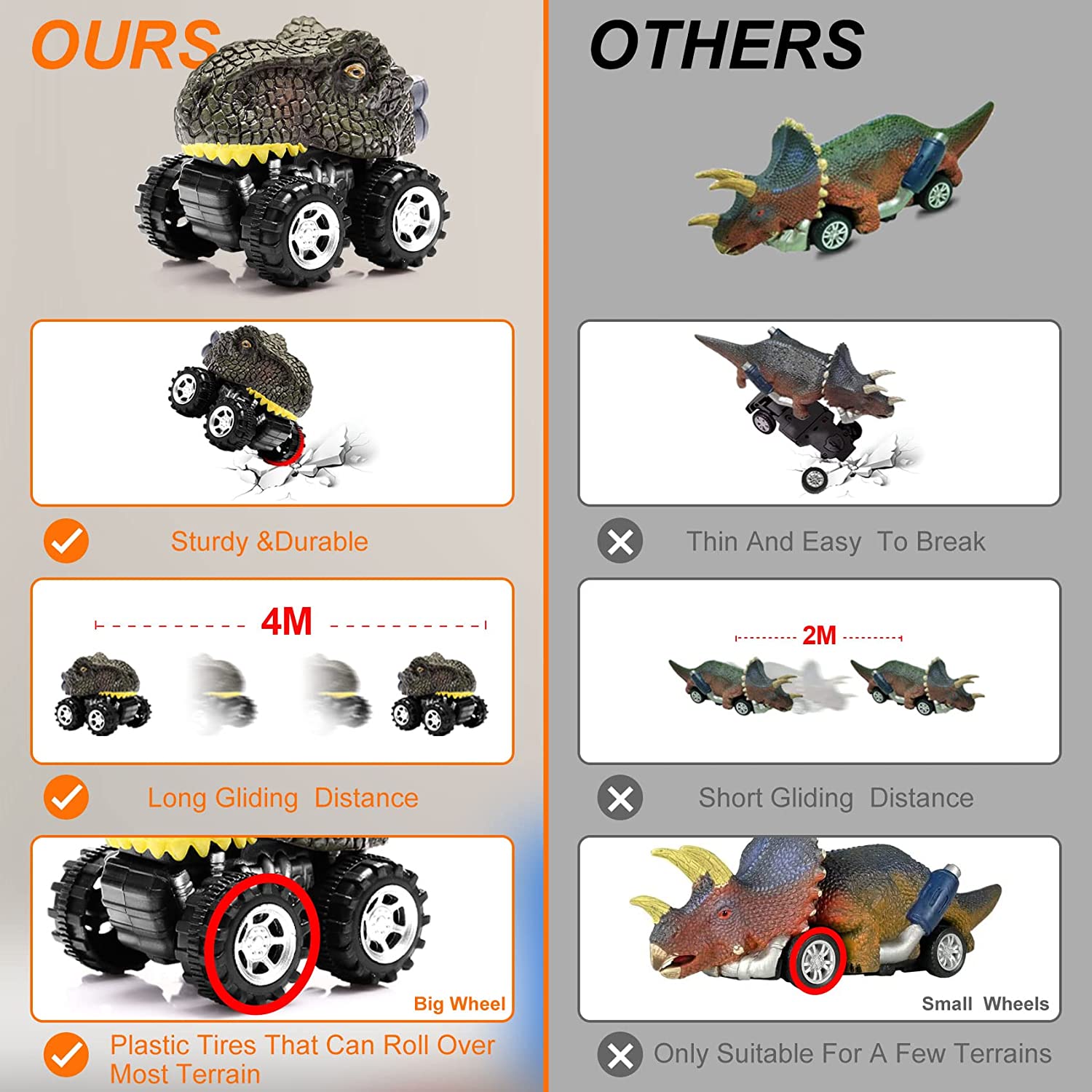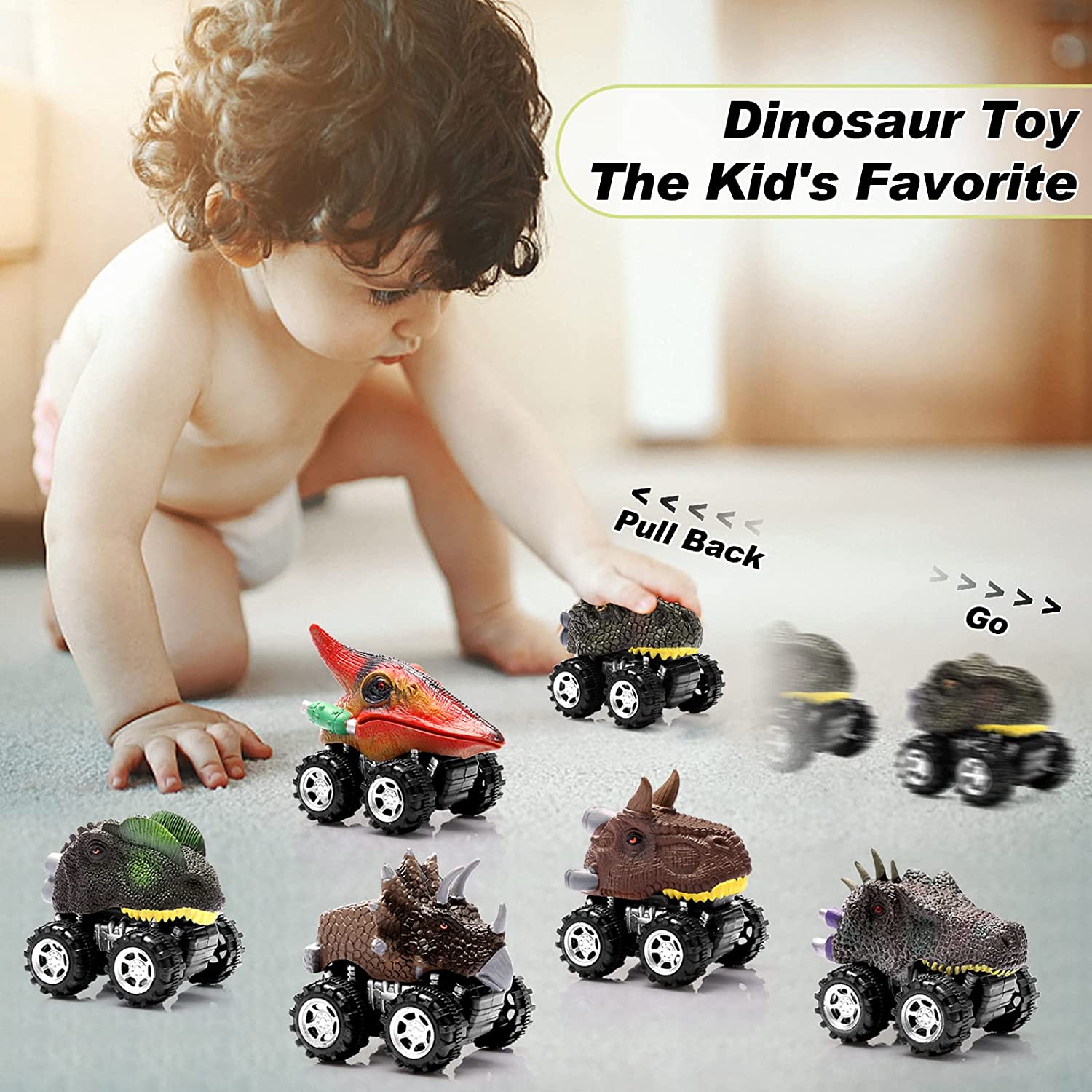 • 【Pull Back Dinosaur Cars】No batteries needed, just pull it back, then release your hand, dinosaur car can run a long distance. Dinosaur toys for 3 year old boys and toddlers, toys for 2 year old boys make great fun for party favors and kids play. Kids can take toy dinosaur to play anywhere.