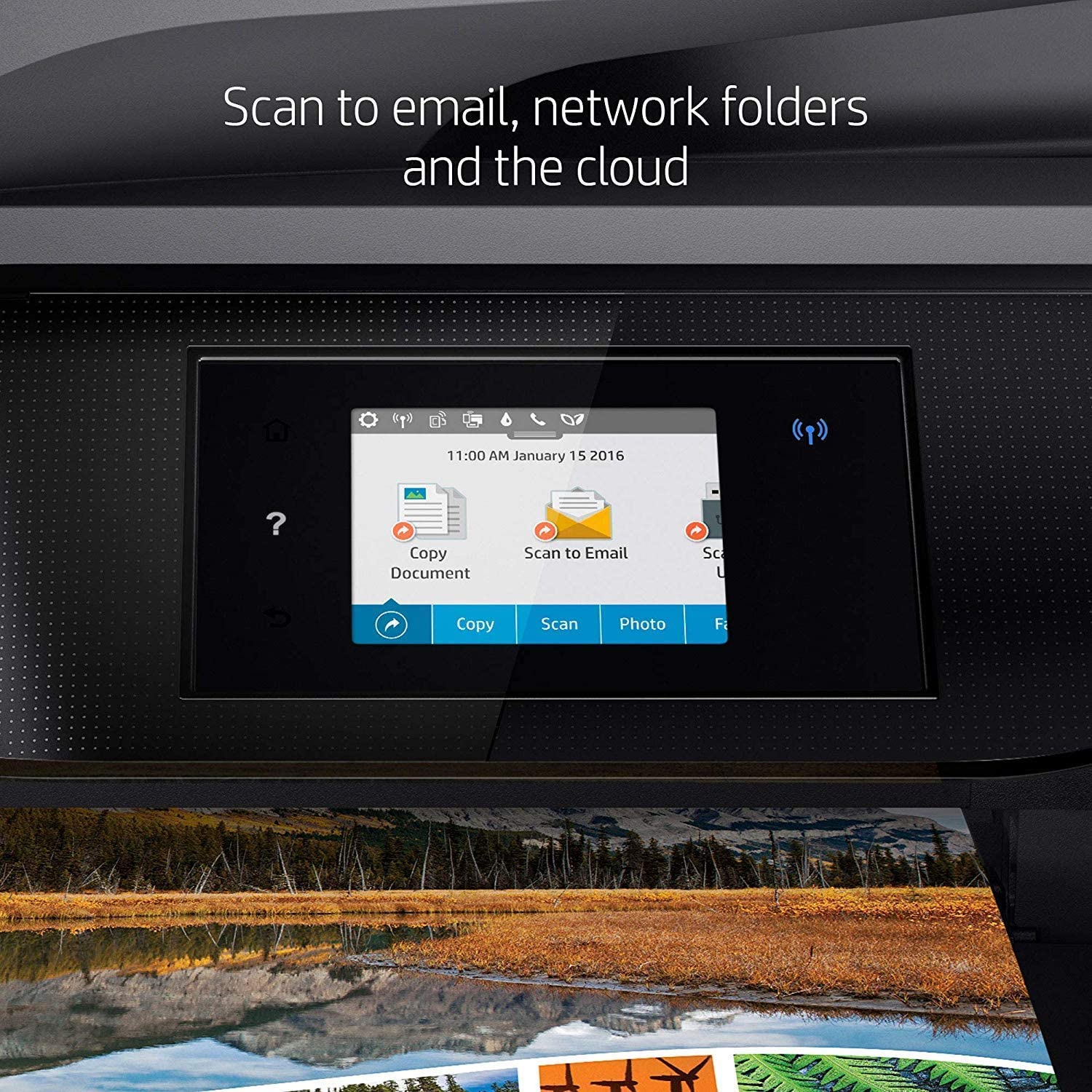 • Main functions of this HP color inkjet photo printer: copy, scan, fax, wireless printing, two-sided duplex printing and scanning, color touchscreen, automatic document feeder, Instant Ink ready so you'll never run out of ink, and more