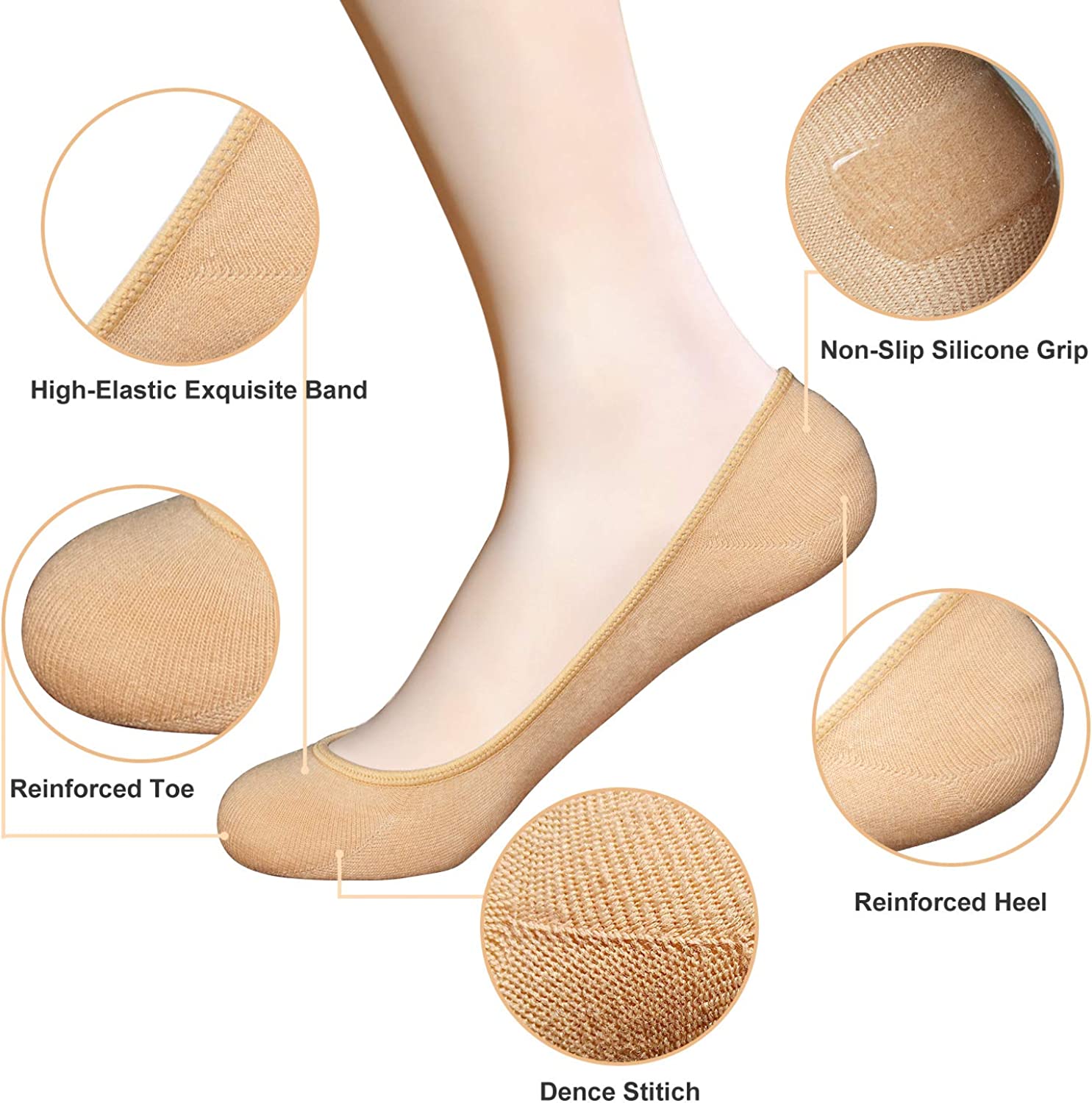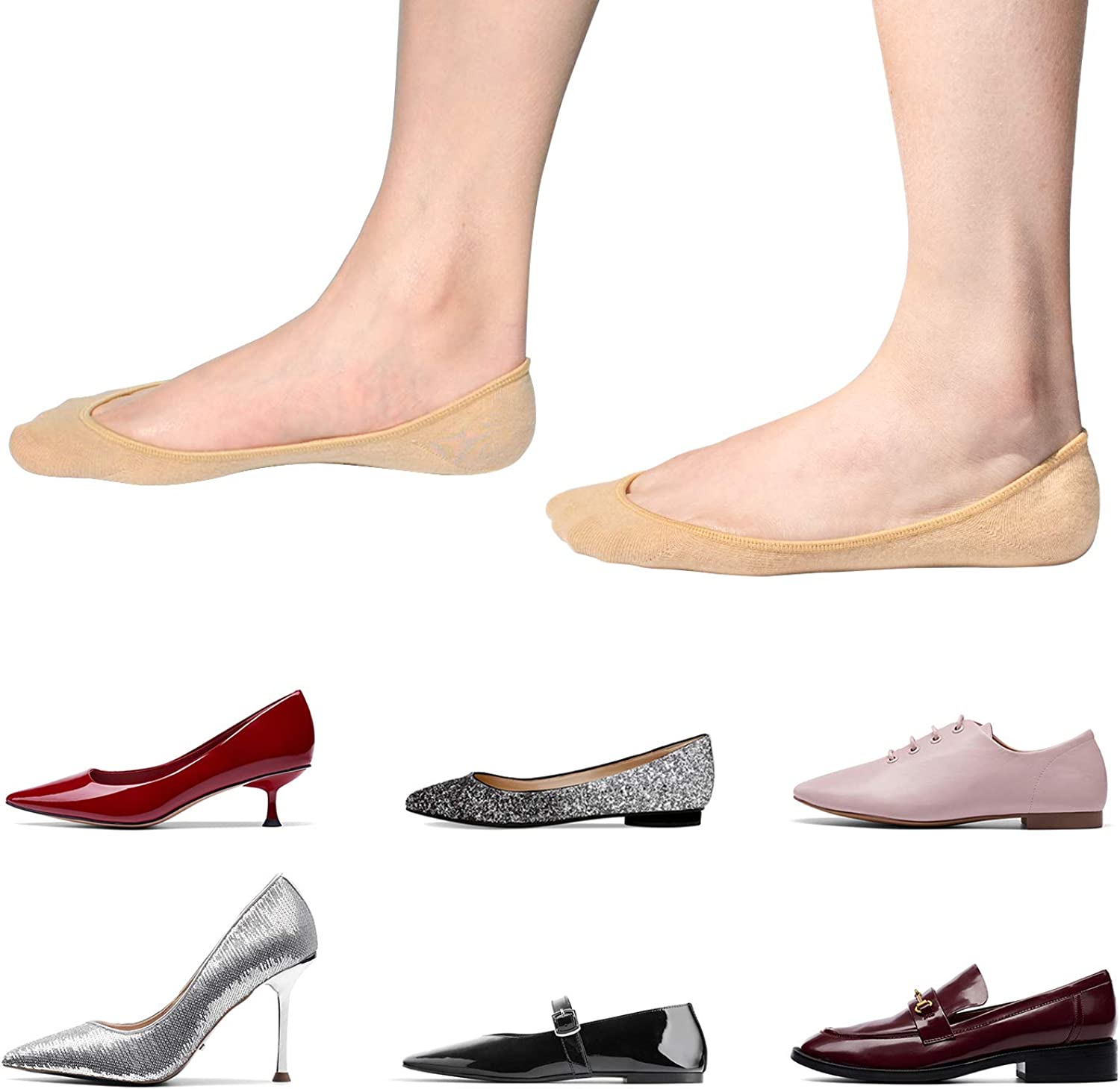 【Specially Designed for Women】The non-slip silicone at the heel prevents socks from slipping down.The low-cut shoe design makes it invisible. No show and non slip socks with basic colors, which are super suitable for a variety of lady's shoes, such as flats, heels, sneakers, and loafers.