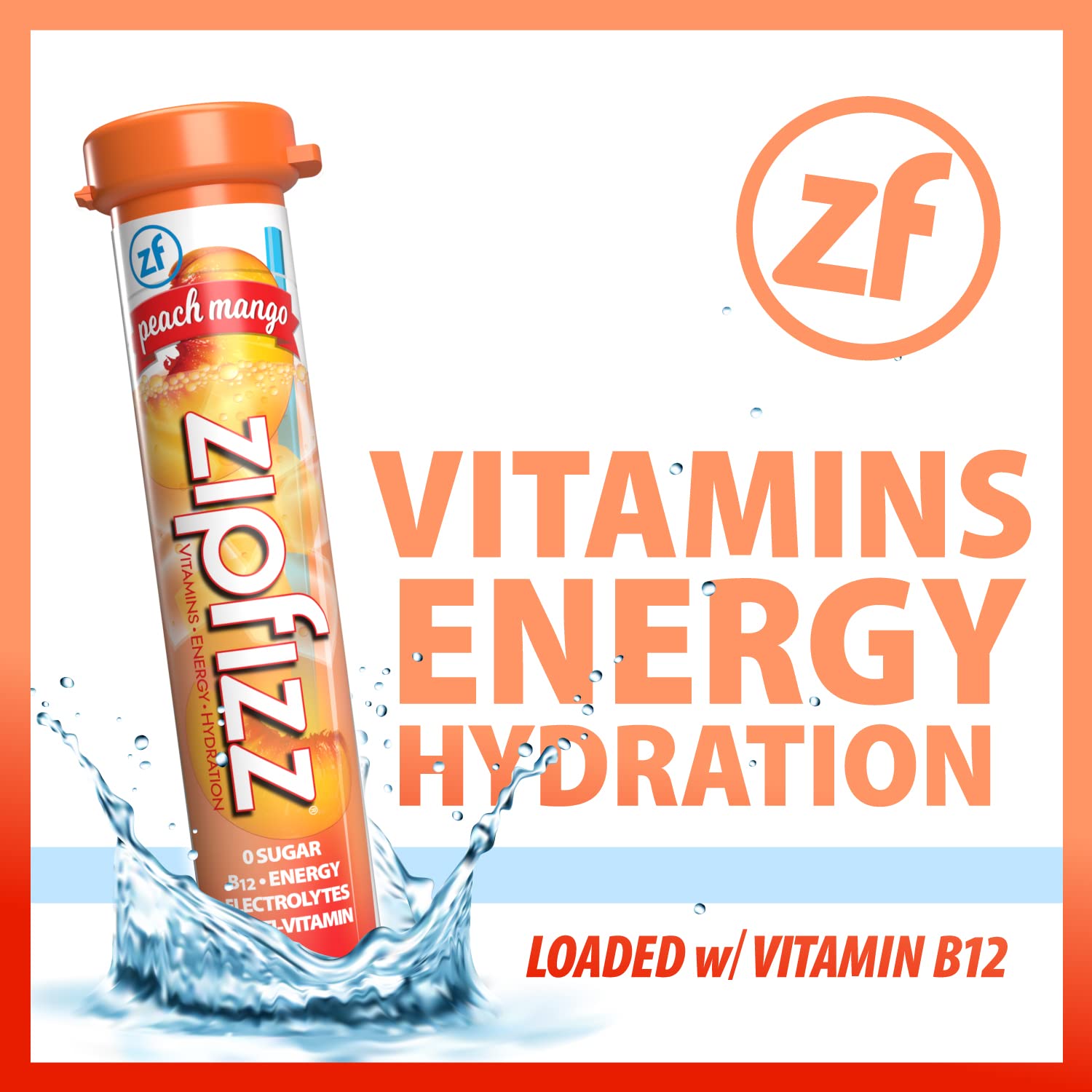 Zipfizz Energy Drink Mix, Electrolyte Hydration Powder with B12 and Multi Vitamin, Peach Mango (20 Pack)