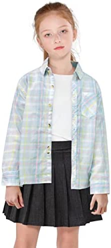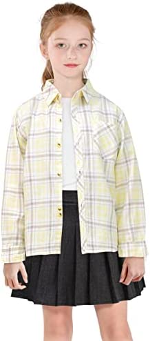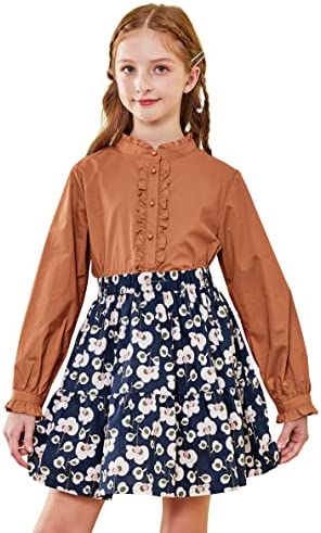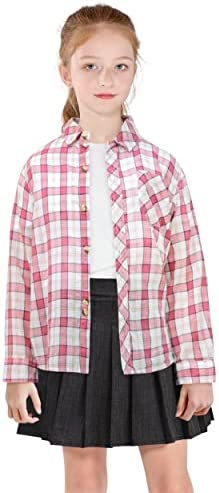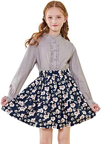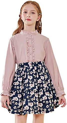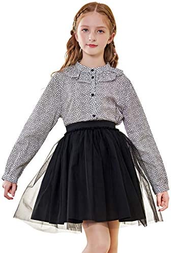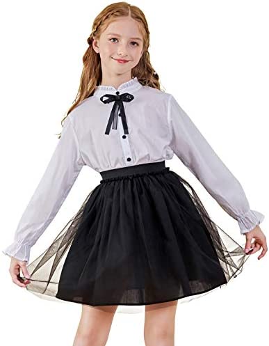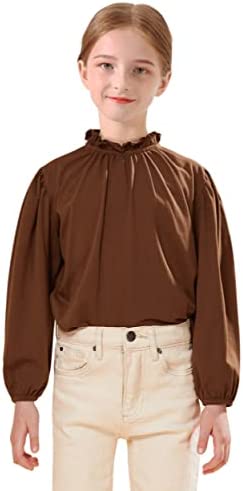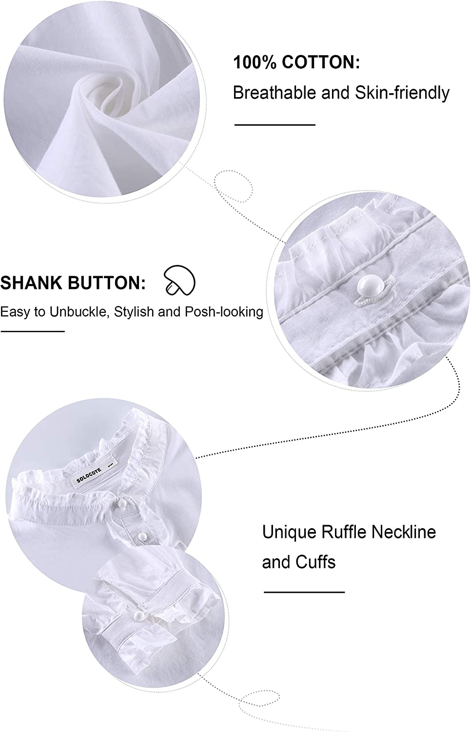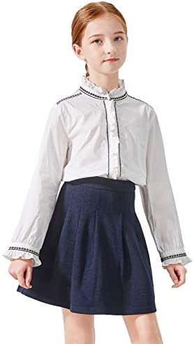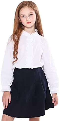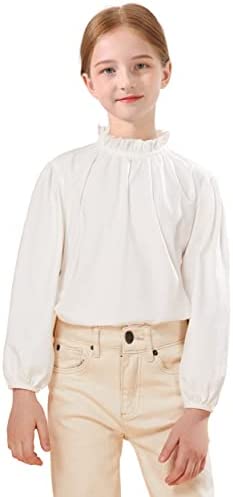 SOLOCOTE Girls White Blouse Ruffle Long Sleeve Button Down Shirts Princess Cotton Loose Soft Tops Spring and Summer 3-14Y