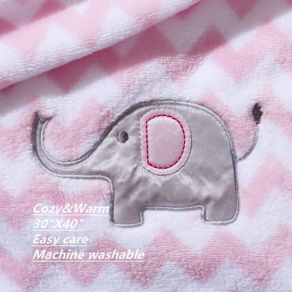 CREVENT 30"X40" Cute Silky Plush Baby Blanket for Girls Infants Toddlers Newborns Crib Cot Stroller, Giftable Suitable for Summer Spring - Pink Elephant