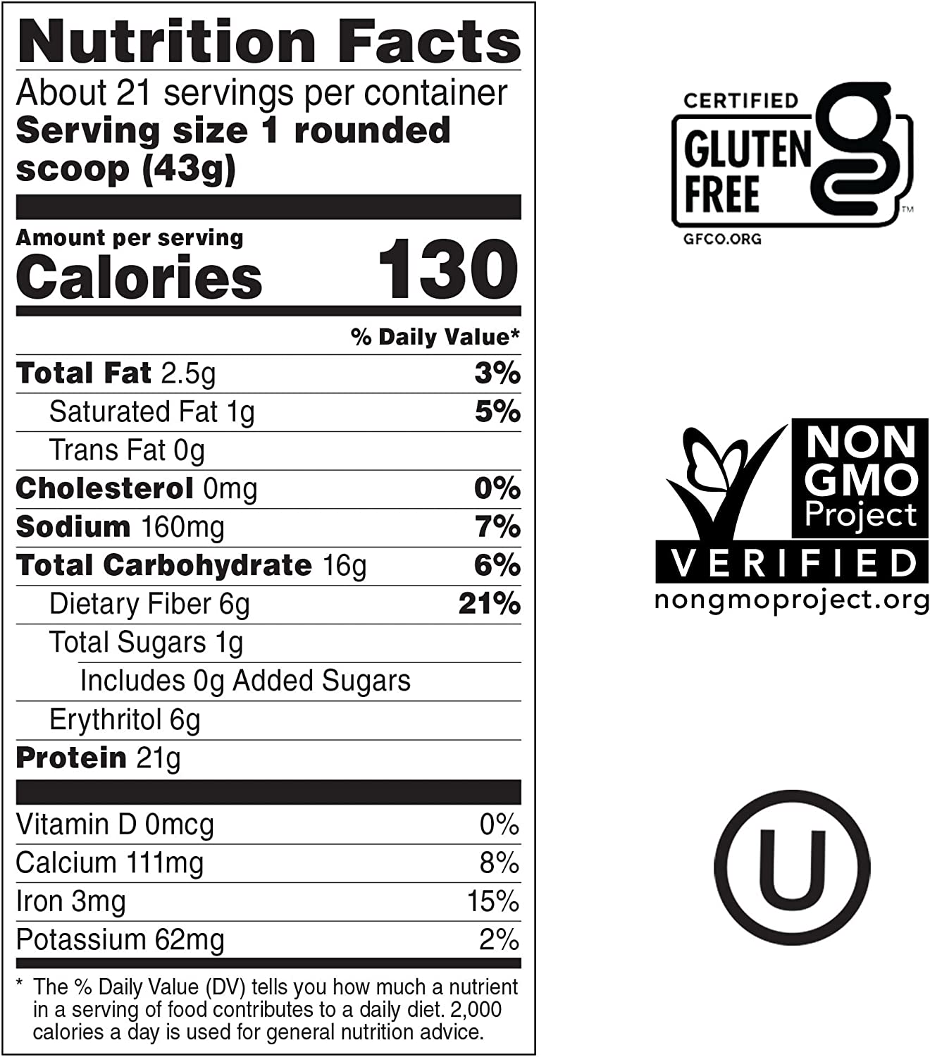 • 21 GRAMS OF NON DAIRY PLANT BASED PROTEIN: The gold standard in clean fuel without any whey. This protein powder is great for muscle recovery and building lean muscle. Each serving of protein powder has at least 20g of protein and only 1g of sugar. This plant based protein powder is great for active lifestyles of men, women, and kids. Our powder is certified gluten free, GMO-free (Non-GMO Project verified), soy free, carrageenan free, refined sugar free, and kosher.