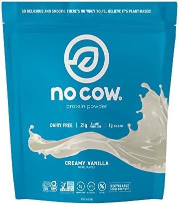 No Cow Vegan Protein Powder, Vanilla, 22g Plant Based Protein, Recyclable Aluminum Container & Scoop, Non Dairy, Soy Free, Low Sugar, Low Net Carb, Gluten Free, Naturally Sweetened, Non GMO, Kosher