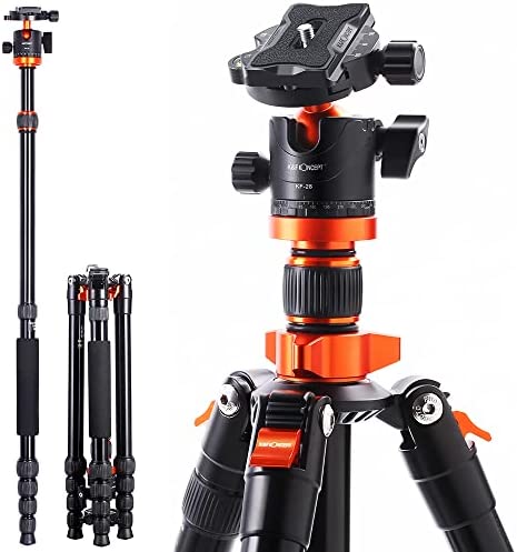 K&F Concept 68 inch /175cm Camera Tripods,Compact Travel Tripod with Monopod,10kg/22lbs Load Capacity 360° Panorama Ball Head Compatible with DSLR Cameras K255A4+BH-28L (TM2515M1)