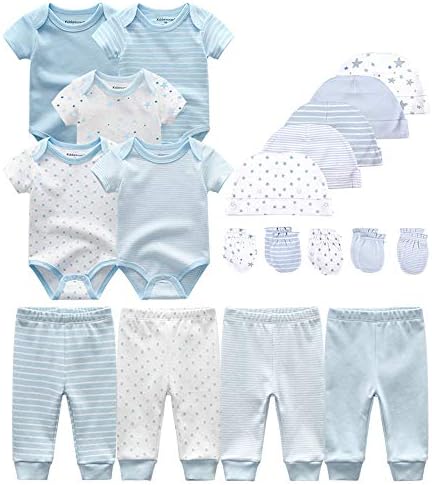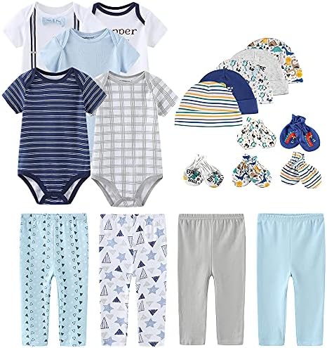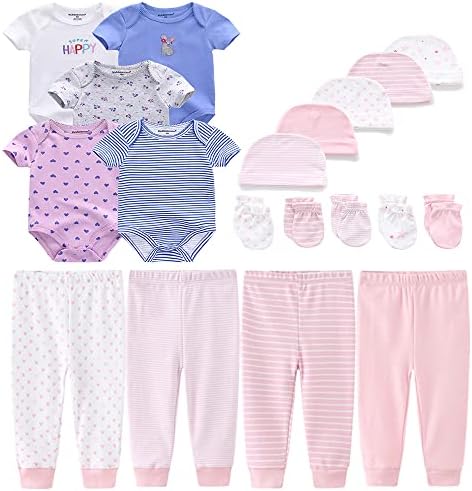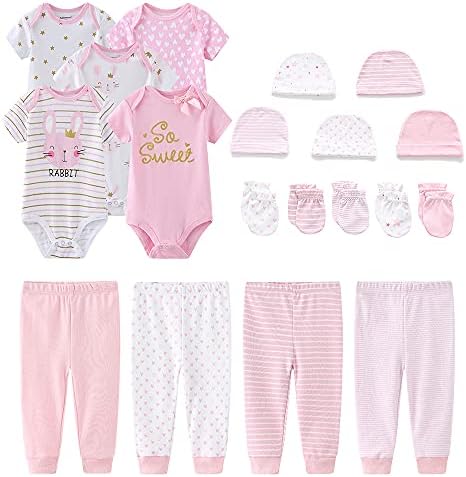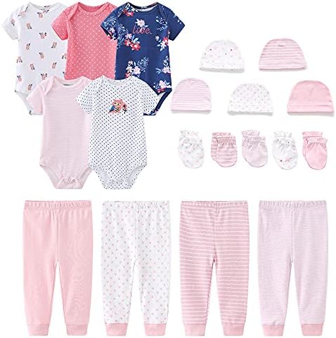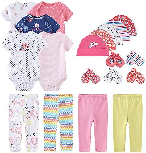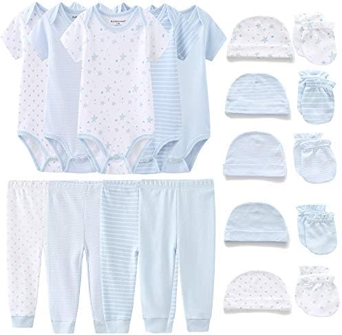 Set includes five bodysuits, four pants, five cap,and five mittens