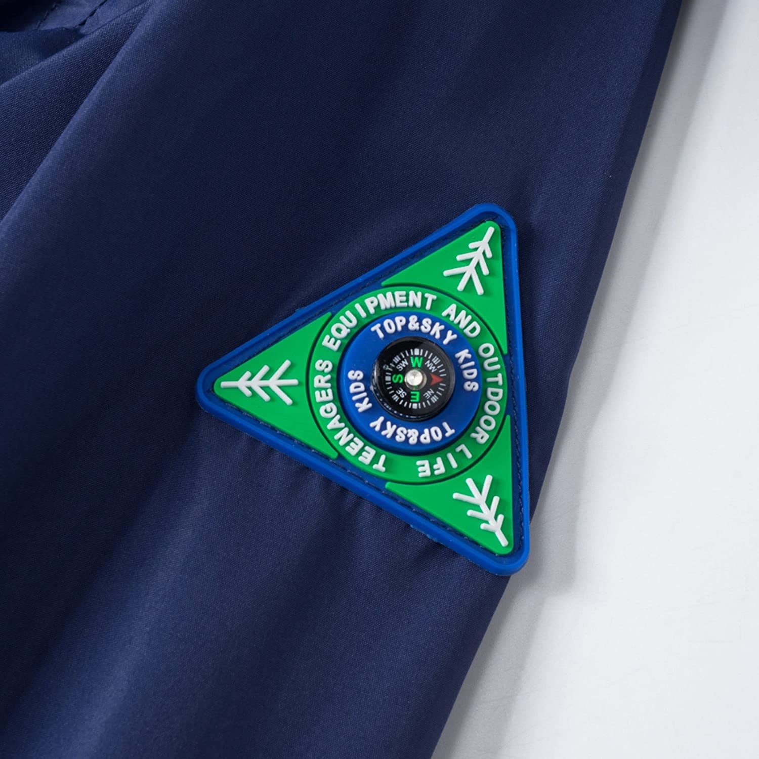 • Full-zip closure, removable hood, elastic cuffs, reflective side zippered pockets, and a tiny compass on the sleeve add to the fun and practicality of the girls rain jacket.