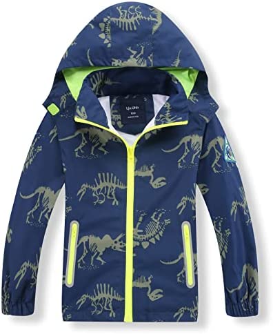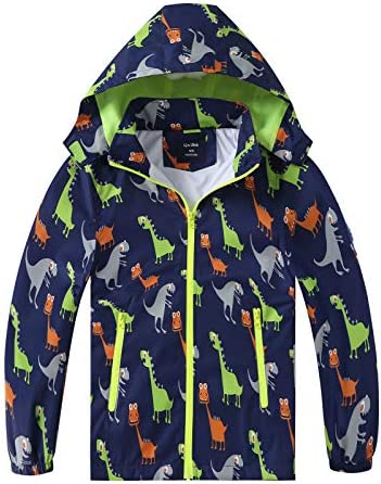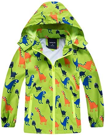 IjnUhb Waterproof Hooded Jacket for Boys Girls,Kids Raincoats Outdoor Windbreaker Dinosaur Rain Jacket