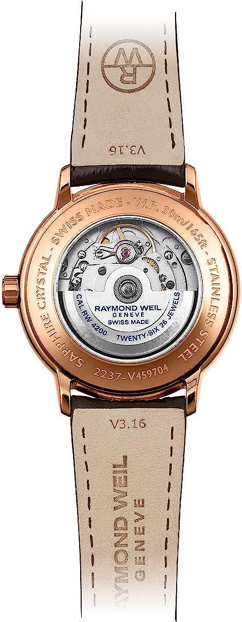 RAYMOND WEIL Maestro Men's Automatic Date Watch, Grey Dial with Rose Gold Indexes, Stainless Steel with Rose Gold PVD Plating, Brown Leather Strap, 39.5 mm (Model: 2237-PC5-60011)