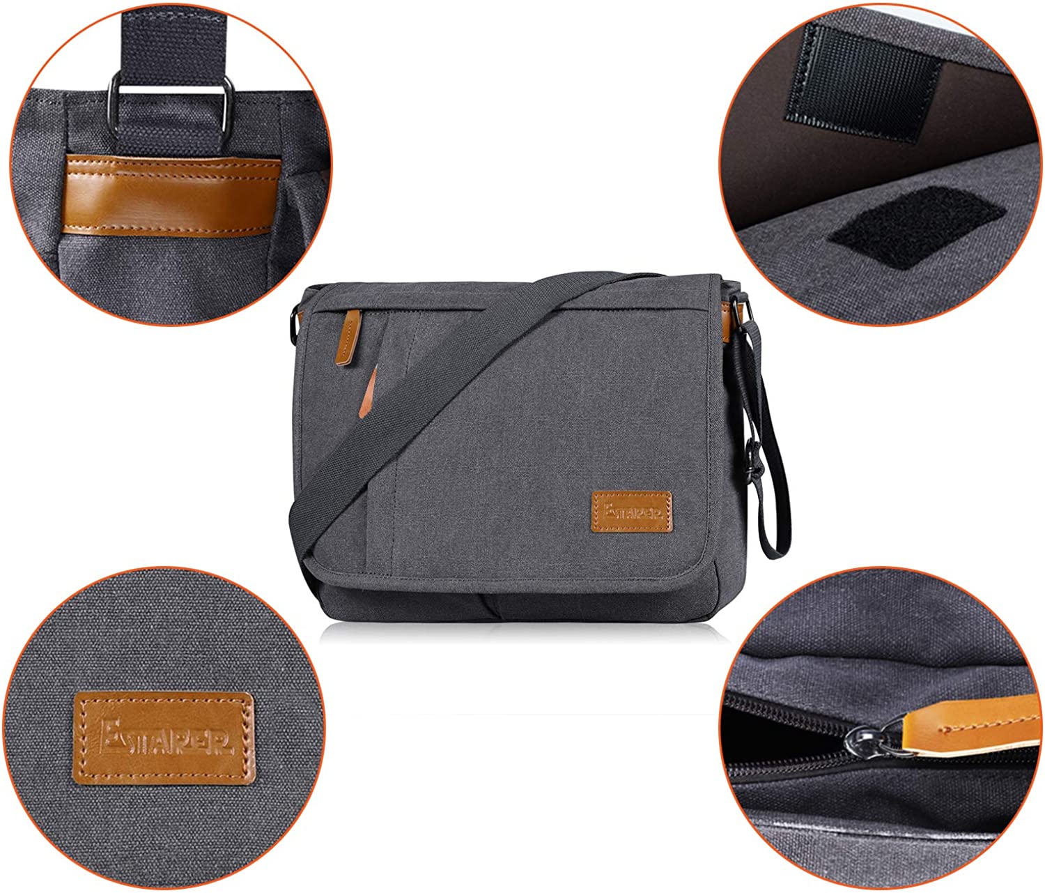 Estarer Messenger Bags for Men Women,13-14 Inch Laptop Water Resistant Shoulder Crossbody Bookbag Canvas Satchel