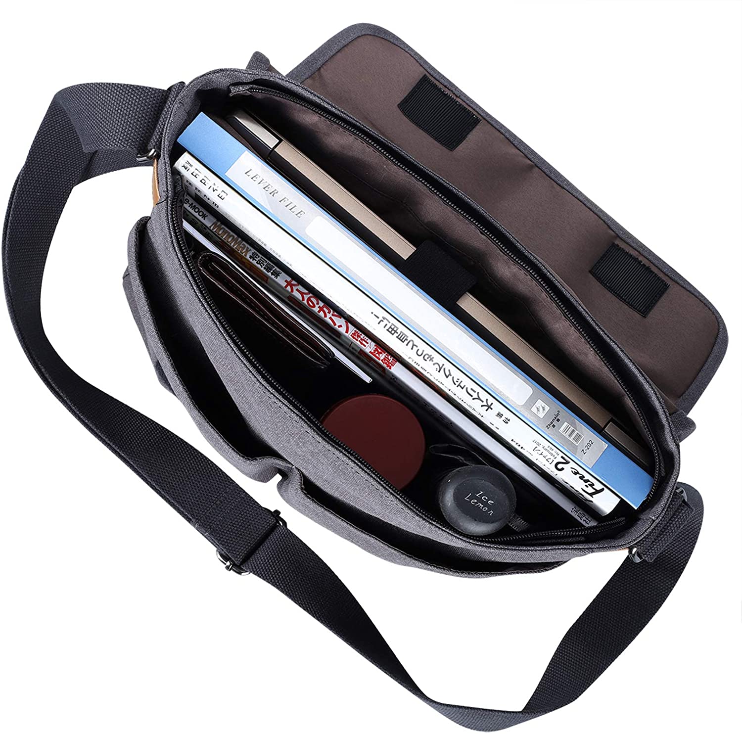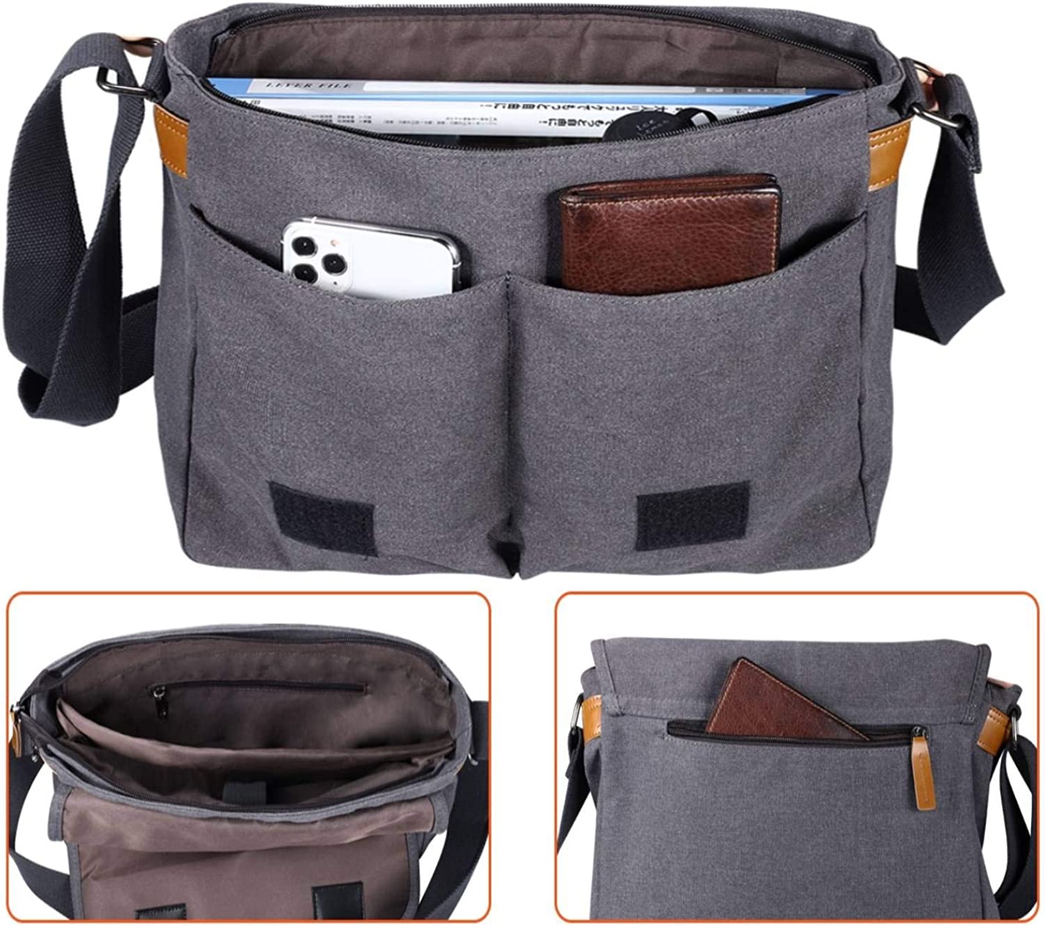 • 【Multiple Rooms Messenger Bag】: A total of 8 pockets. Roomy enough for all of your stuffs: 2 front zipper pocket, 2 front button pocket, 2 open inner Pockets, 1 inner zipper pocket and 1 back zipper pocket.