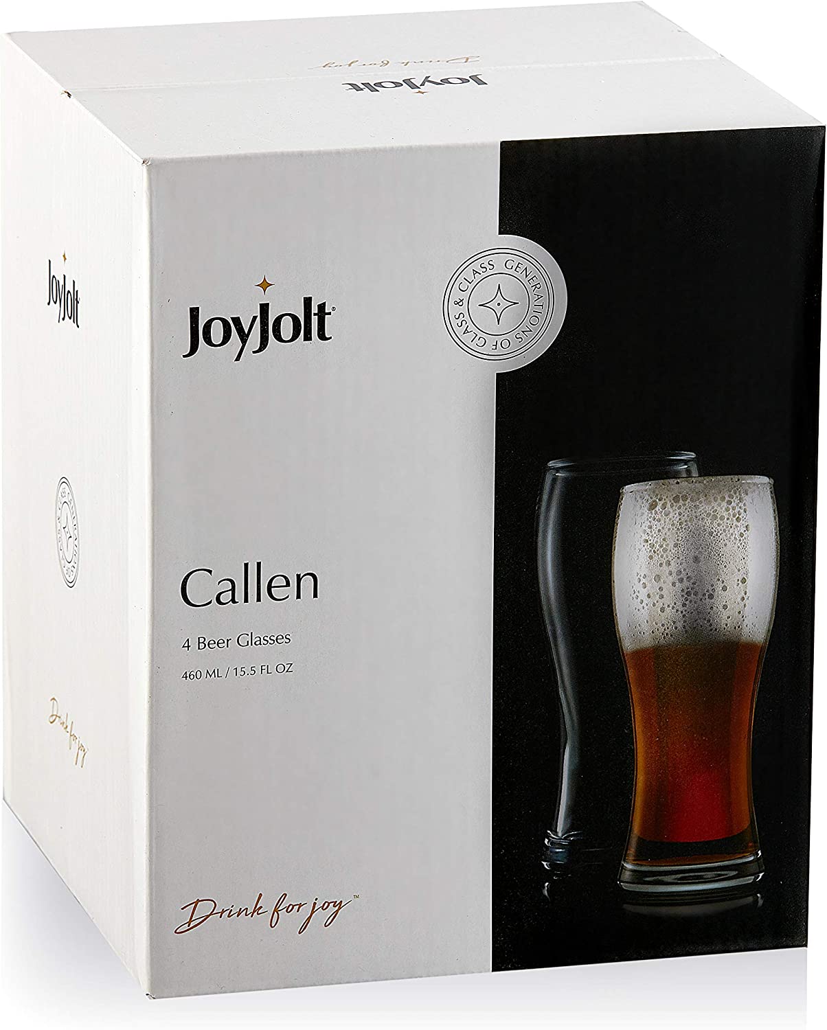JoyJolt Callen 15.5oz Beer Glasses Set of 4 Beer Pint Glass. Craft Beer Glass, Pilsner Glasses, IPA Beer Glass. Solid Glassware Beer Cup. Classic Beer Gifts, Beer Cups, Mugs and Beer Glasses for Men