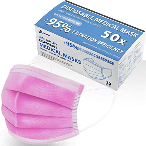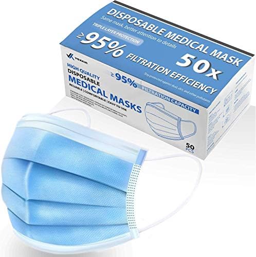 Voxkin Blue Disposable Medical Face Masks Pack of 50 - Lab Tested, 3 Ply Protection - Effective Filtration, Breathable Facial Masks with Earloop, Mouth & Nose Protection Dust Safety Masks