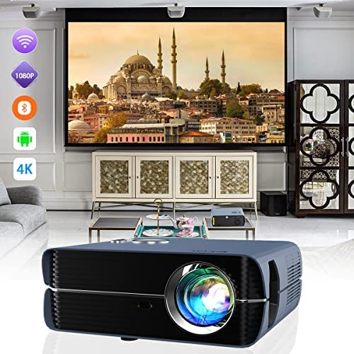 5G Wireless Outdoor Moive Projector 1080P Native Bluetooth AI Android 4K Support 10,000Lumen Ultra HD Smart TV Projector Home Cinema Theater for HDMI USB DVD PS5 Computer iPhone/iPad