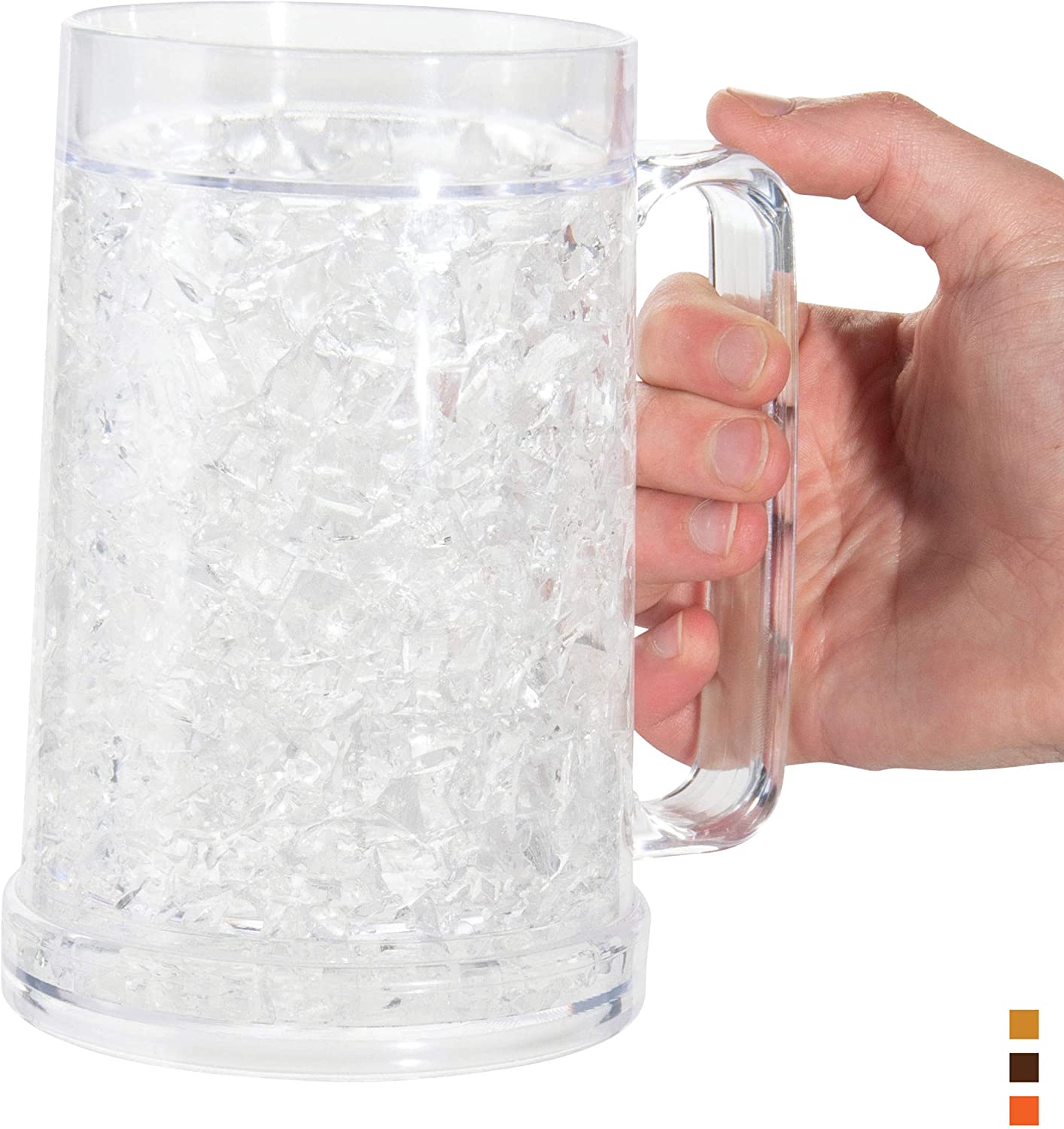 • THE MAGIC IS IN THE GEL- never use ice cubes again and water down your beverage! The proprietary cooling gel in the insulated plastic walls of this glass works as a beer chiller when frozen. Simply pop the mug upside down in the freezer for 2-4 hours to freeze the gel.