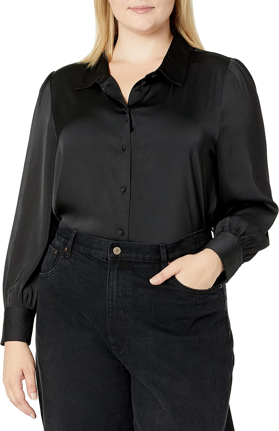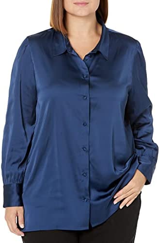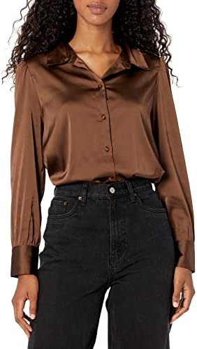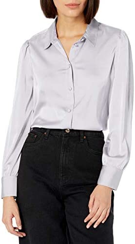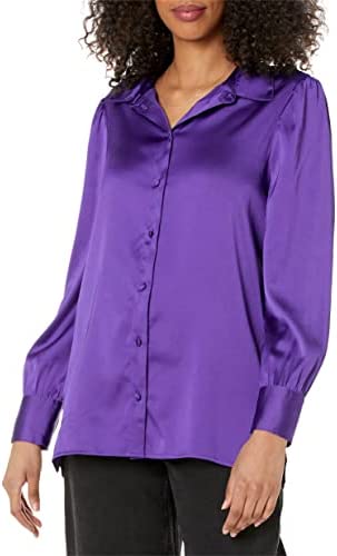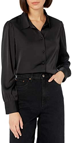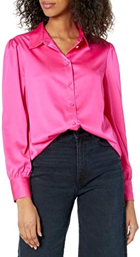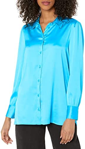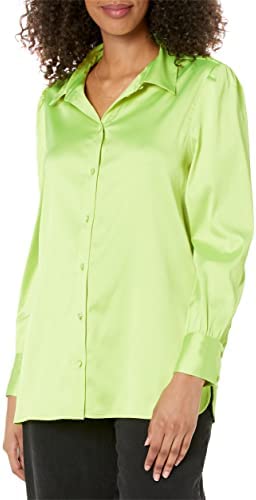 The Drop Women's Standard @Lucyswhims Long-Sleeve Button Down Stretch Satin Shirt
