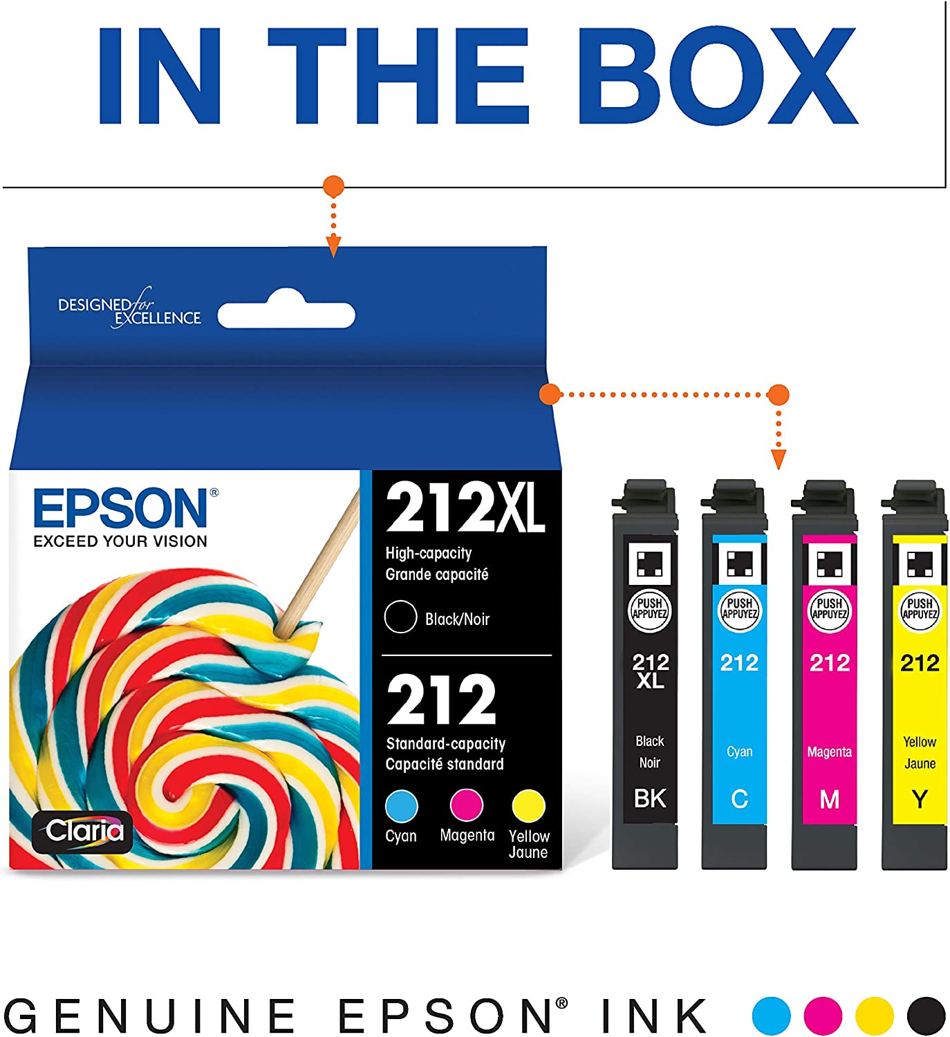 EPSON T212 Claria -Ink High Capacity Black & Standard Color -Cartridge Combo Pack (T212XL-BCS) for select Epson Expression and WorkForce Printers