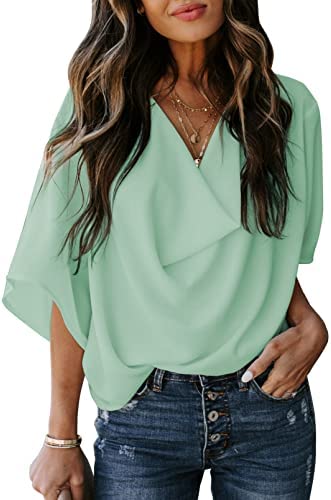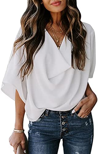 HOTAPEI Womens Blouses and Tops for Work Fashion Casual Summer Short Sleeve Shirts