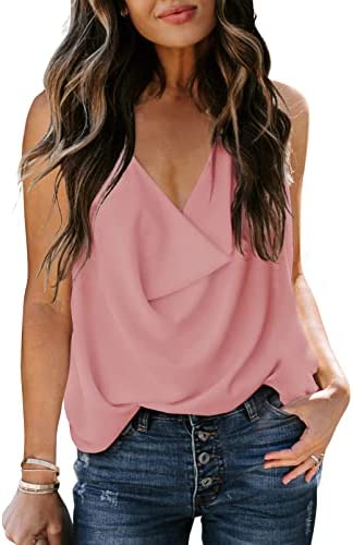 Design: Cute summer tops designed with a loosely draped front, crepey fabric.
