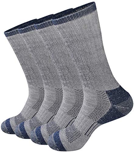 GKX Men's Merino Wool Moisture Wicking Outdoor Hiking Work Boot Heavy Cushion Crew Socks