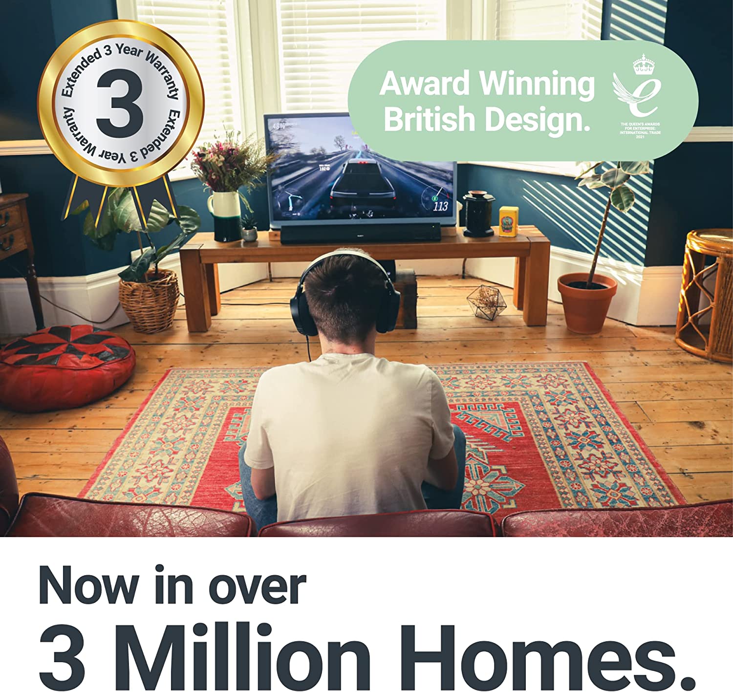 - POWERFUL SPEAKERS & SUBWOOFER: The Teton tv sound bar is a 2.1 audio system with a built-in-subwoofer which delivers an outstanding cinematic sound experience. The powerful 120 watt speakers can pack a punch for any avid gamer or simply enhance your TV experience with clean and crisp audio. Music, radio, gaming, movies, live sport, tv shows - listen to audio the way its meant to be heard.