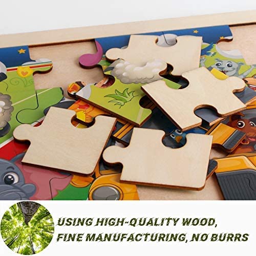 • ❤ STURDY STRUCTURE: This jigsaw puzzle for kids has 24 pieces that come in a sturdy wooden tray for easy transport and storage. The puzzle toy is made of high quality wood and each part is thick and durable enough for repeated use by young children aged 3-8 years old.