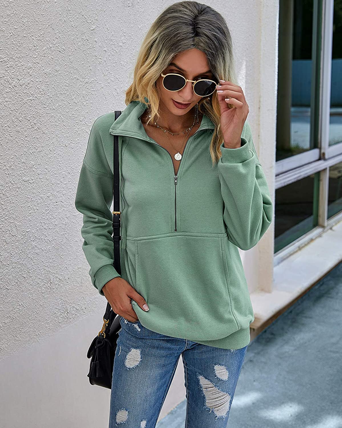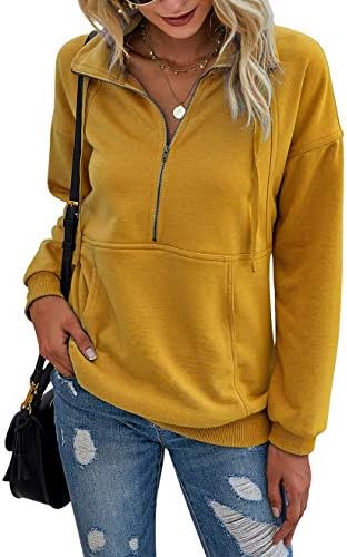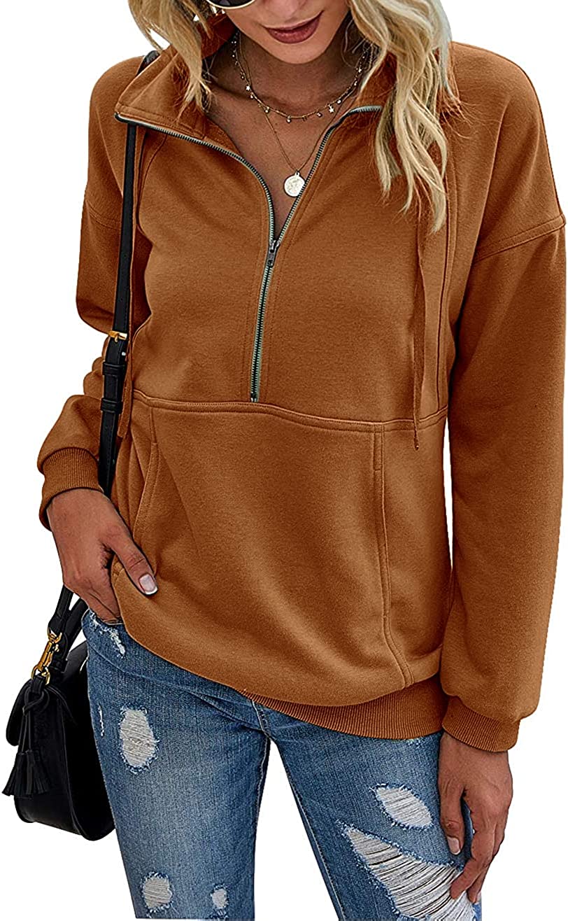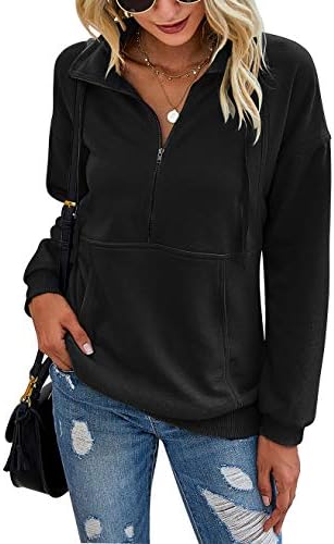 Features: Half zip pullover women, Solid color cute sweatshirts for women, Lapel half zip up sweatshirt women, Womens sweatshirt no hood, Long Sleeve pullover sweatshirts for women, Ribbed cuffs, 1 front big pocket, Oversized sweatshirt for women, Soft zipper fall sweatshirts for women loose fit, Casual womens sweatshirts no hood, Drawstring neck womens oversized sweatshirts, Quarter zip pullover women