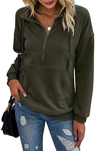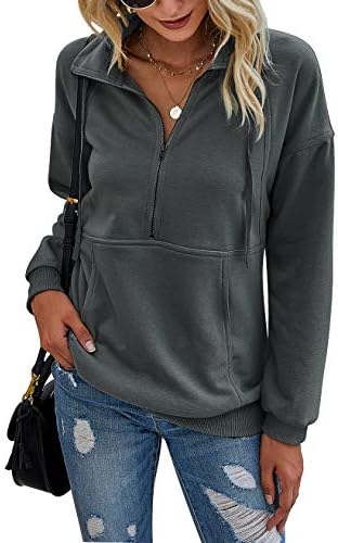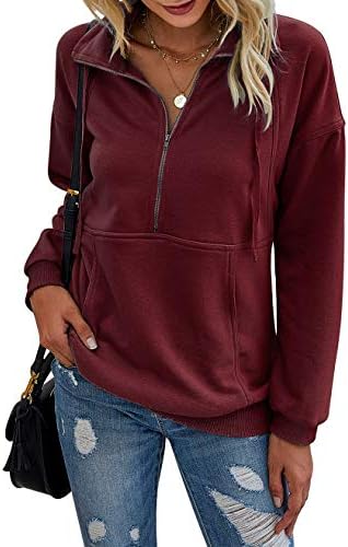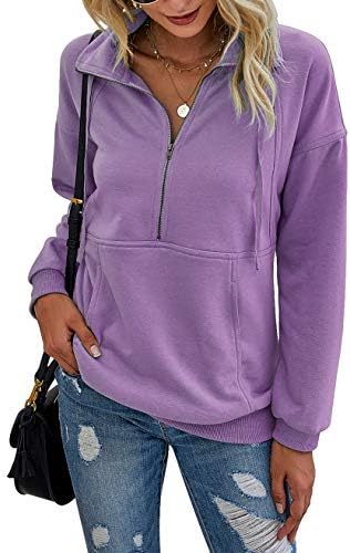 Versatile Half Zip Pullover Women: Drawstring lapel womens sweatshirt in solid color is simple yet fashion. Half zipper womens sweatshirts no hood are easy to put on and take off. Relaxed fit plain cute sweatshirts for women can be dresses up or down, perfect with leggings, jeans or shorts
