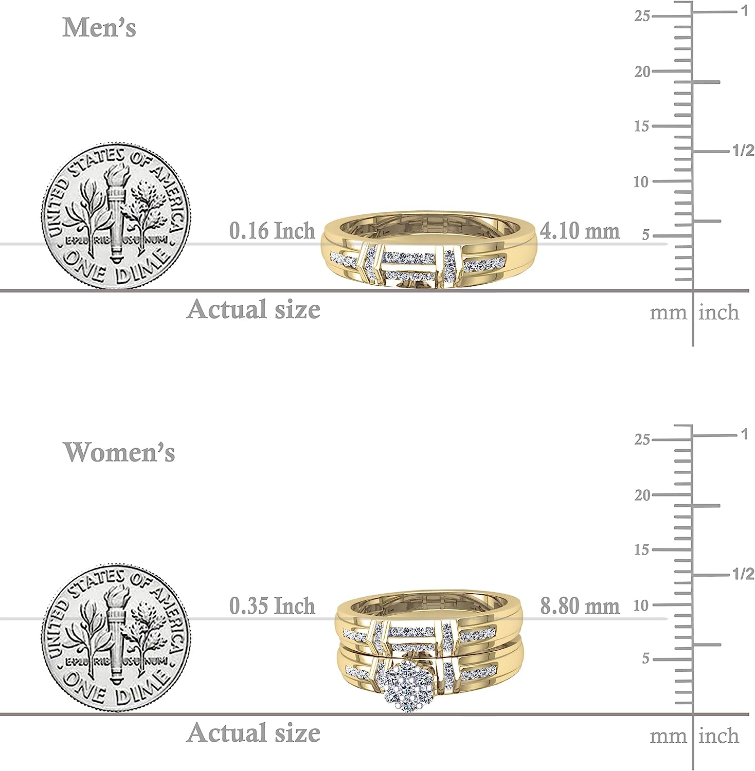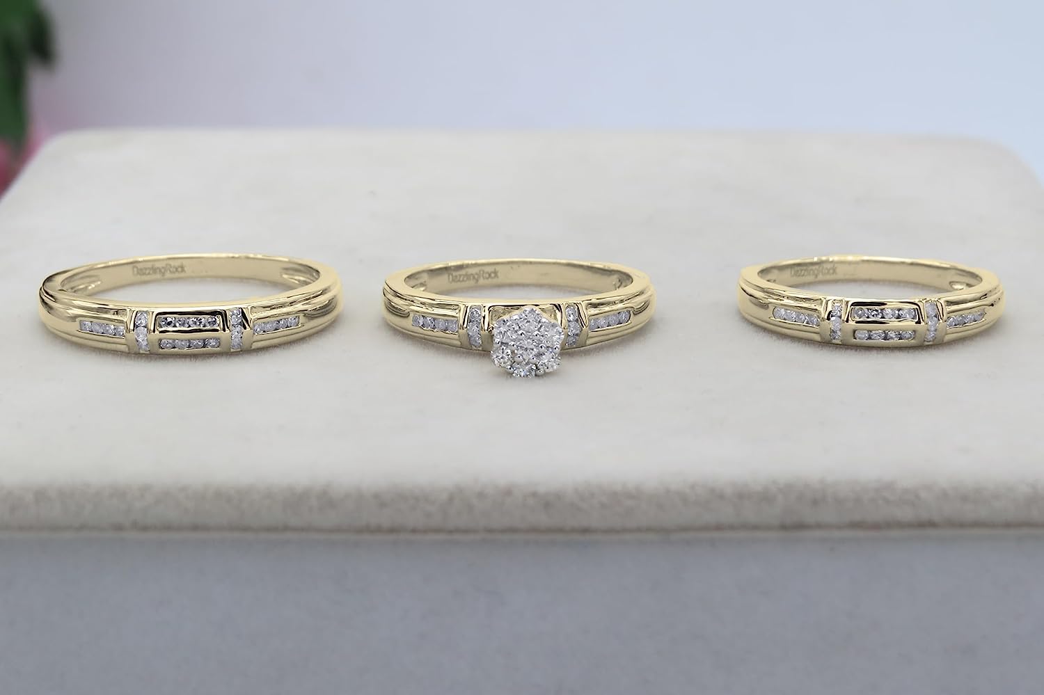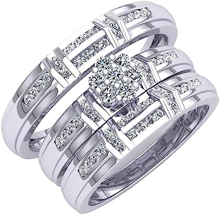 Dazzlingrock Collection 0.50 Carat (ctw) Round White Diamond Cluster Wedding Trio Ring Set for Him & Her (0.50 ctw, Color I-J, Clarity I1-I3) in Gold
