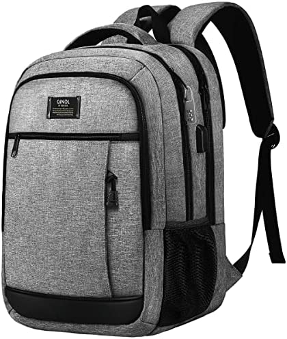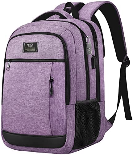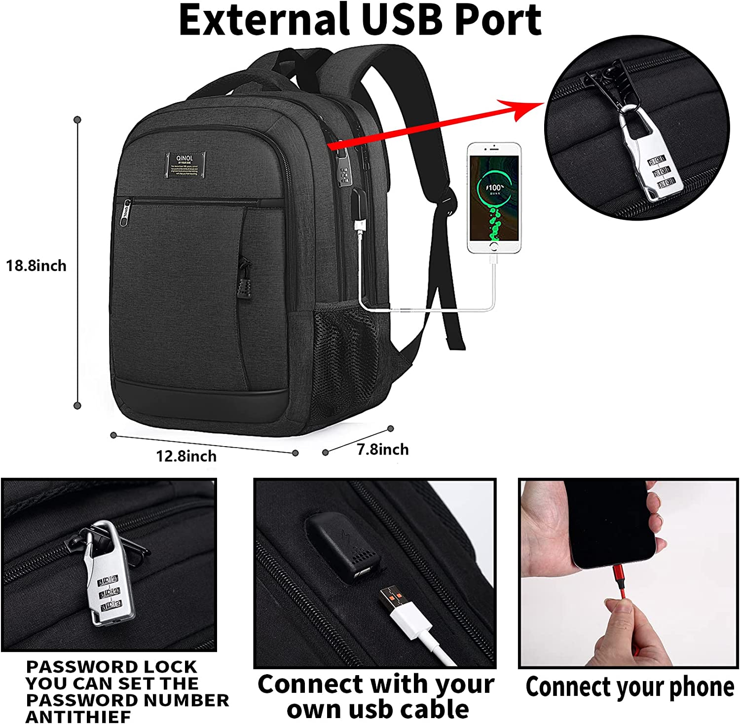 QINOL Travel Laptop Backpack Anti-Theft Work Bookbags With Usb Charging Port, Water Resistant 15.6 Inch College Computer Bag for Men Women, Black
