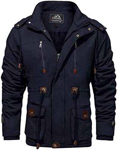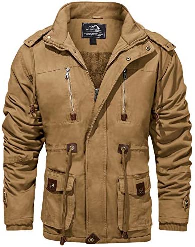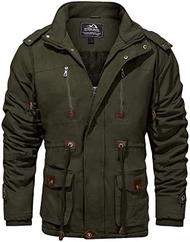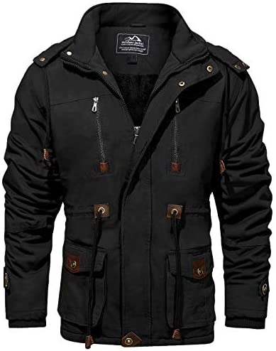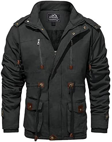 MAGCOMSEN Men's Winter Cargo Work Jacket Fleece Lined Thicken Military Jacket with Removable Hood