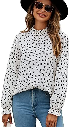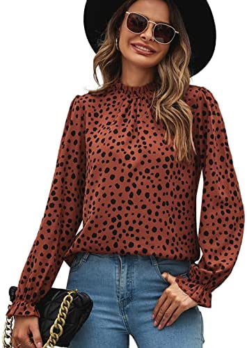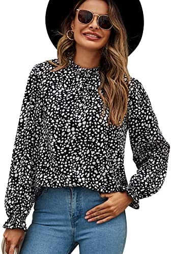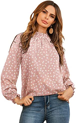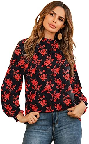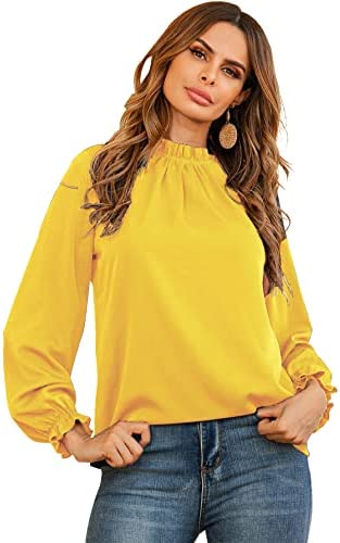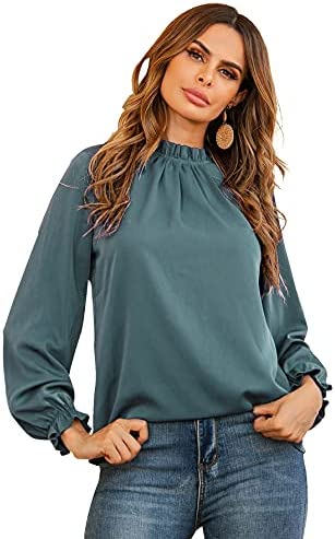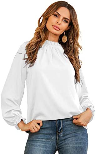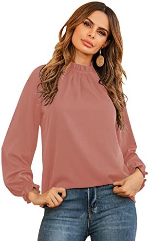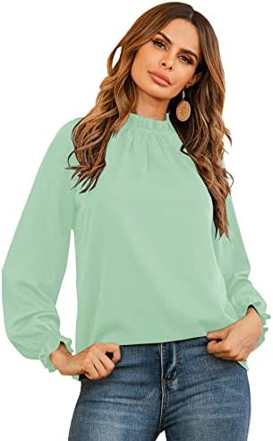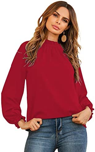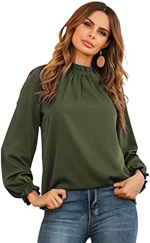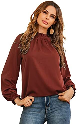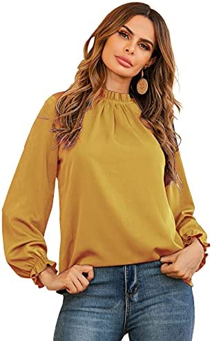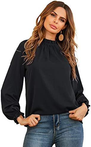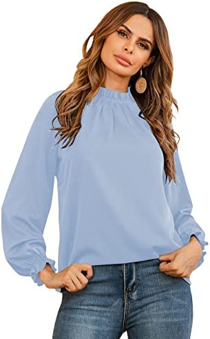 - Mock neck flounce sleeve blouse top for spring and winter. The top is not only suitable for your casual daily wear but also perfect as a wear to work/office/business wear.
