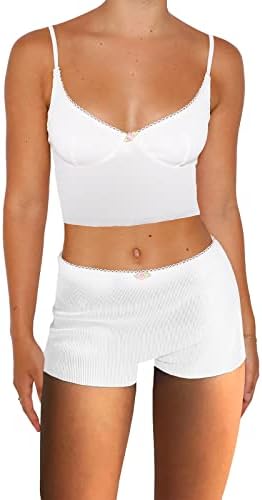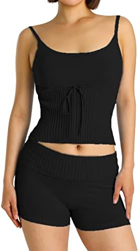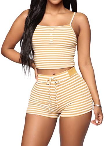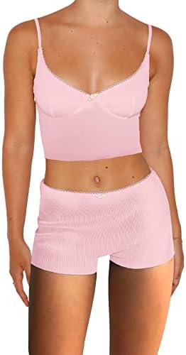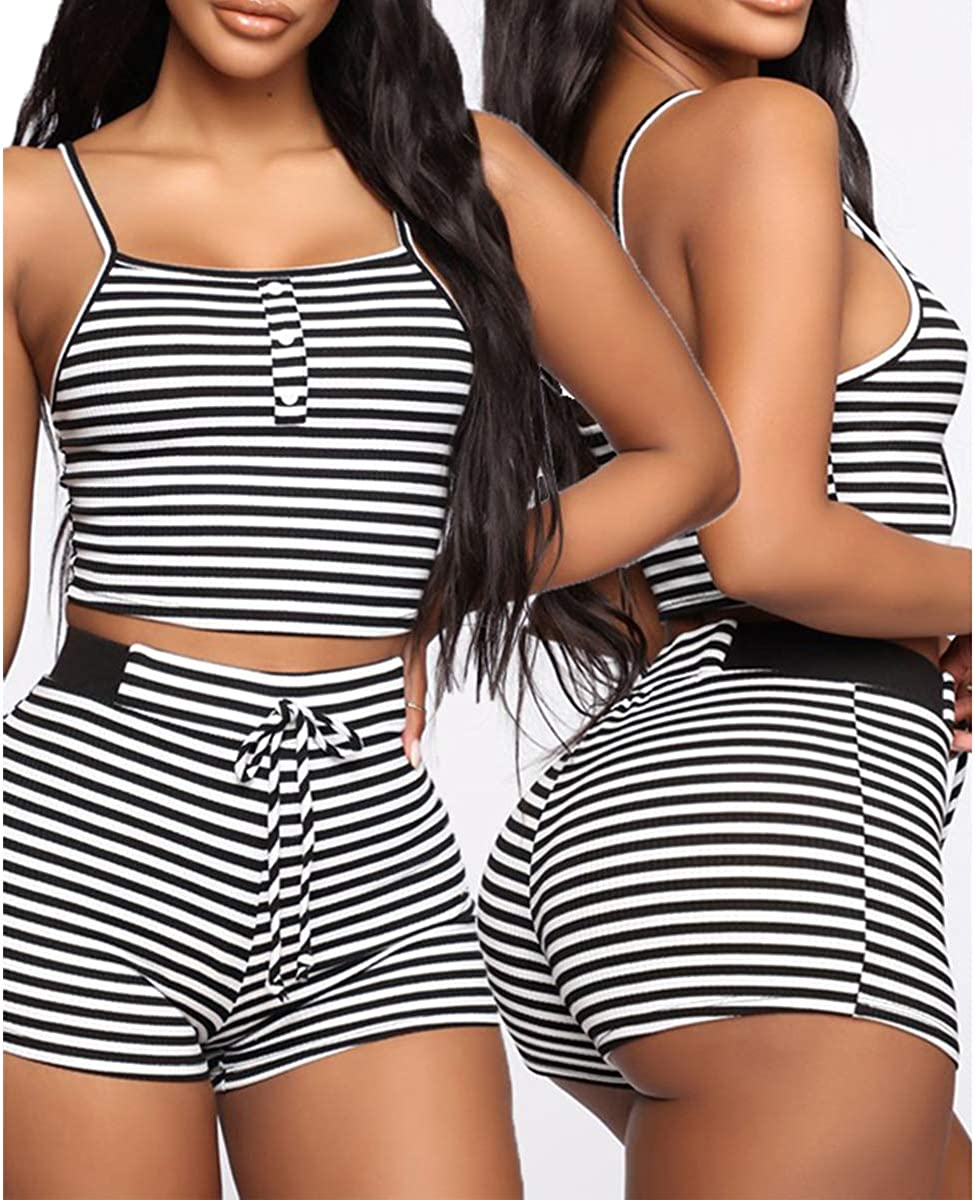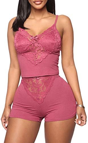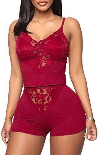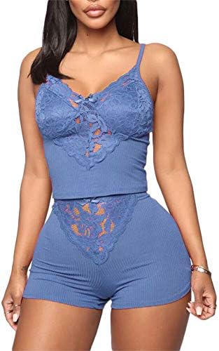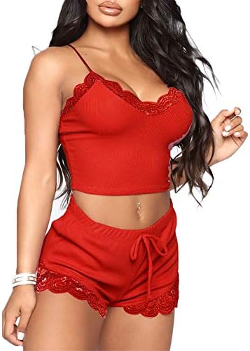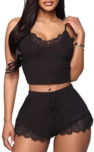 Pajama Top: Sleeveless pajama set and V-neck with lace trim, adjustable strap.Classic PJ sets in casual style , easy fit and lightweight