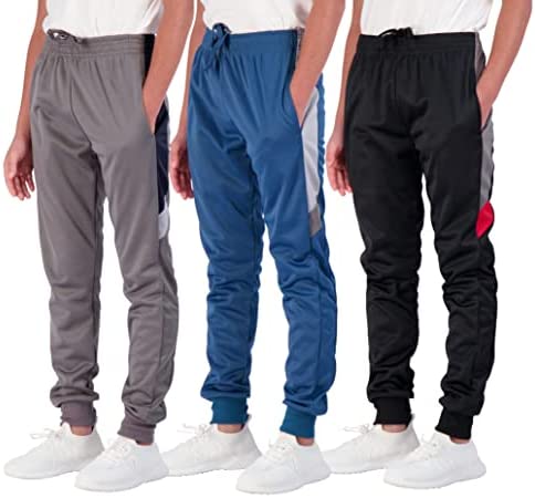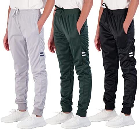 Real Essentials 3 Pack: Boy's Active Athletic Casual Jogger Sweatpants with Pockets