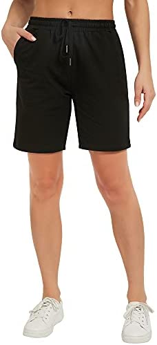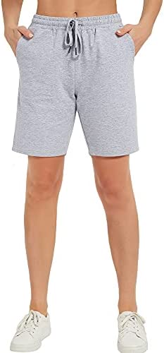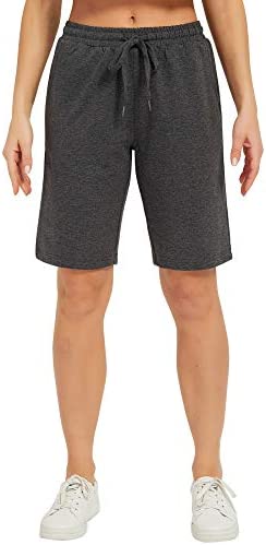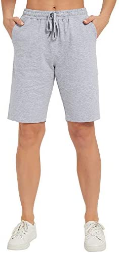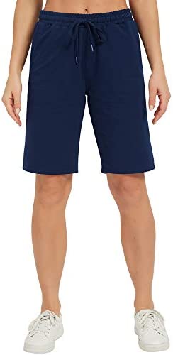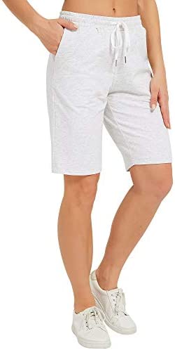 • Material: This bermuda shorts made of 73% cotton, 20% polyester, 7% spandex. Cotton material give you comfy and breathable feeling. Spandex makes this sweat shorts stretchy, so you won't feel uncomfortable when you do any movement in this shortses, lounging around the house, etc.
