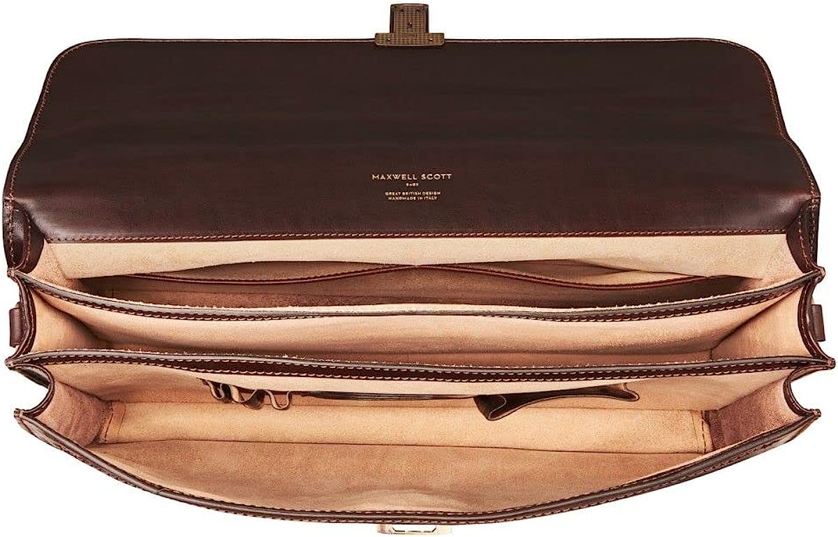 Maxwell Scott | Mens Luxury Leather 17" Laptop 3 Section Briefcase | The Paolo Large | Business Travel Bag