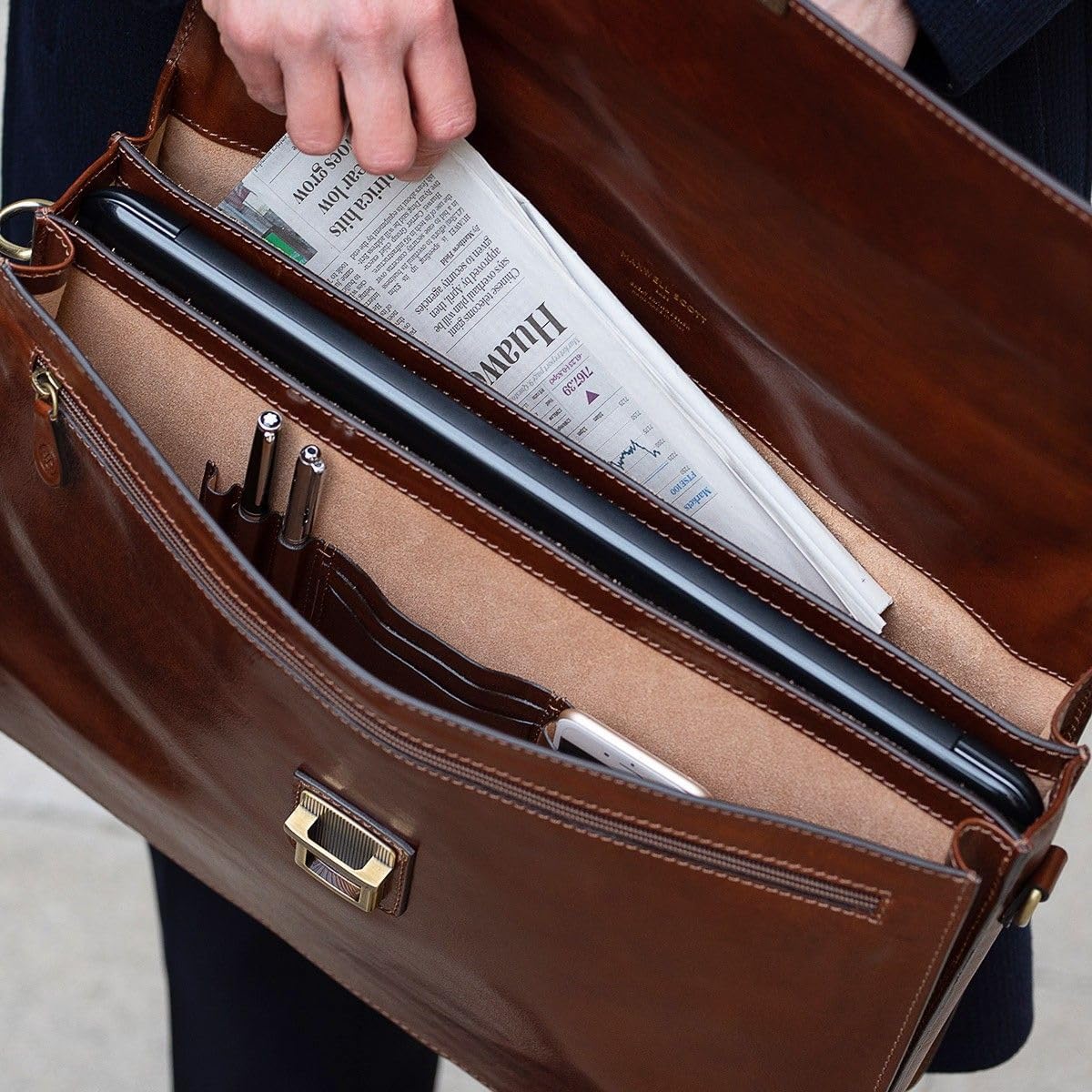 • STYLE: Designed the refined businessman, this luxury Italian leather laptop briefcase blends modern functionality with exquisite craftsmanship and British design.